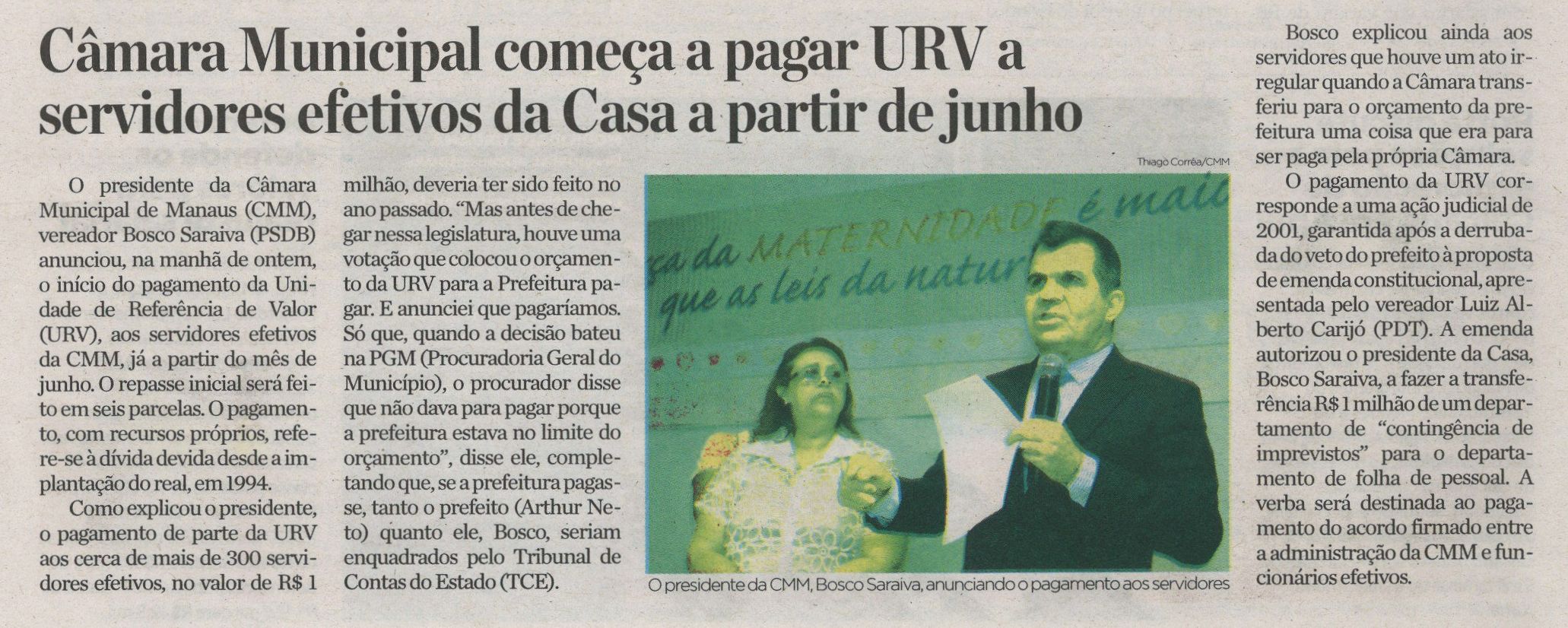 Câmara Municipal começa a pagar URV a servidores efetivos da Casa a partir de junho |