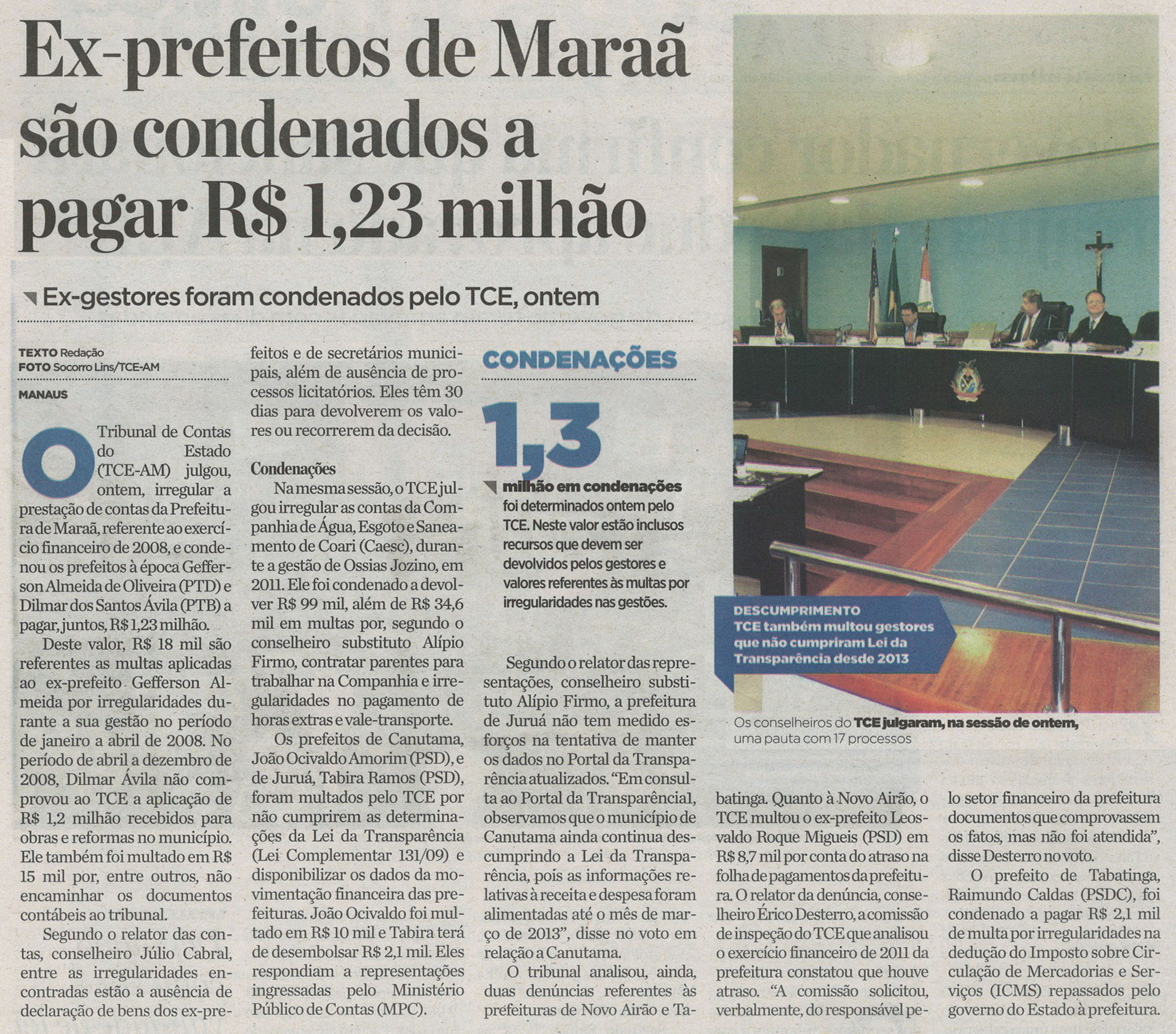 Ex-prefeitos de Maraã são condenados a pagar R$ 1,23 milhão |