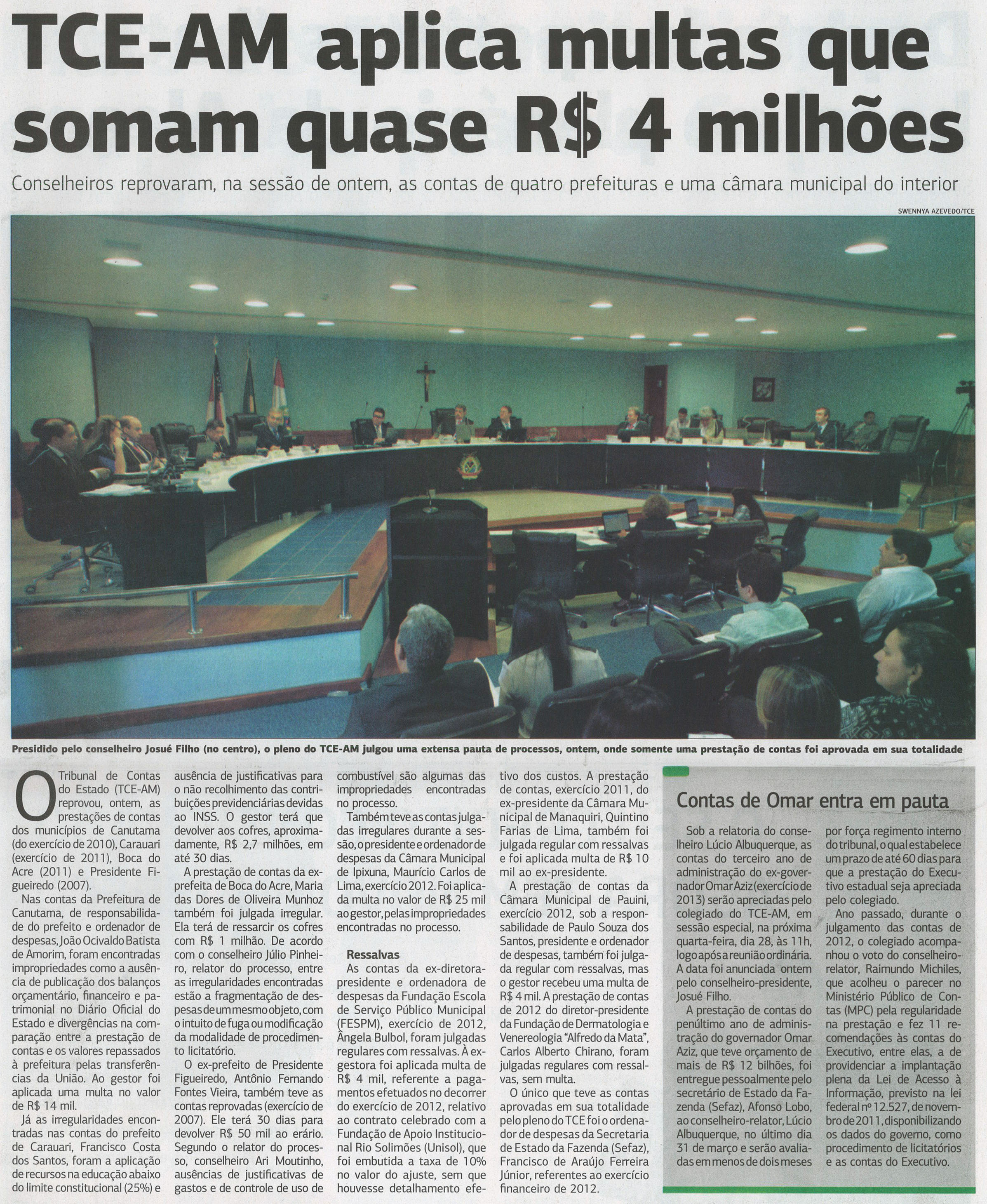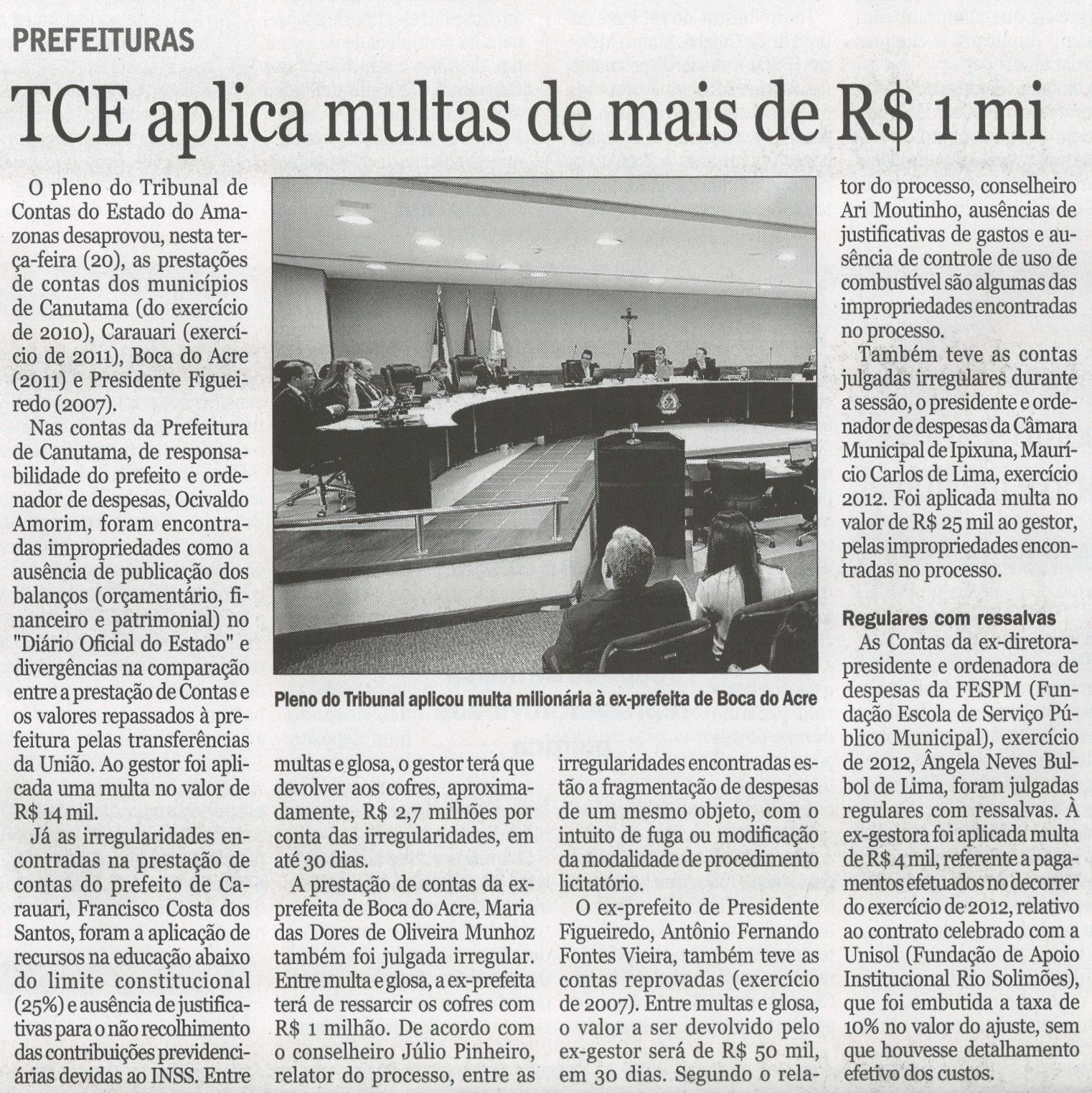 TCE-AM aplica multas que somam quase R$ 4 milhões |