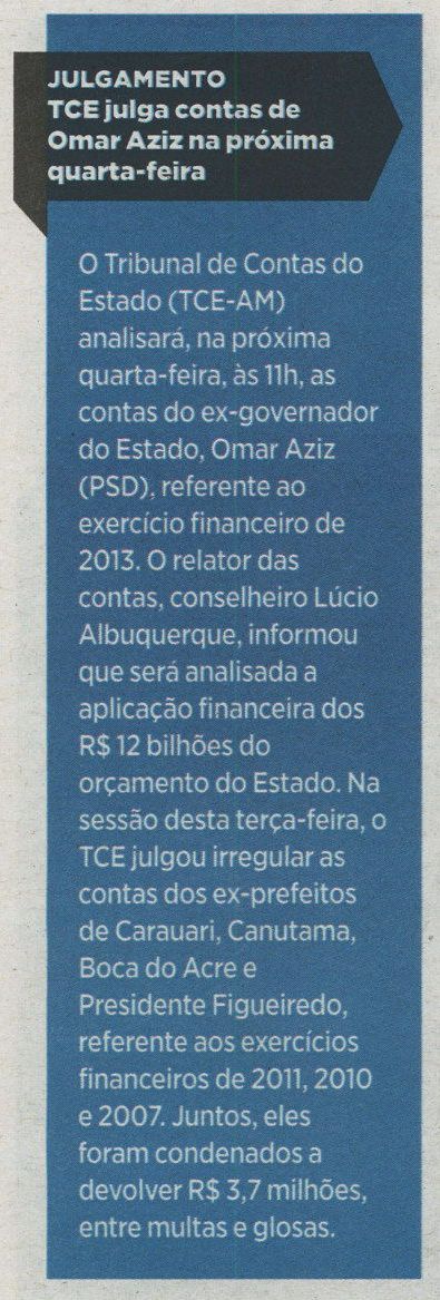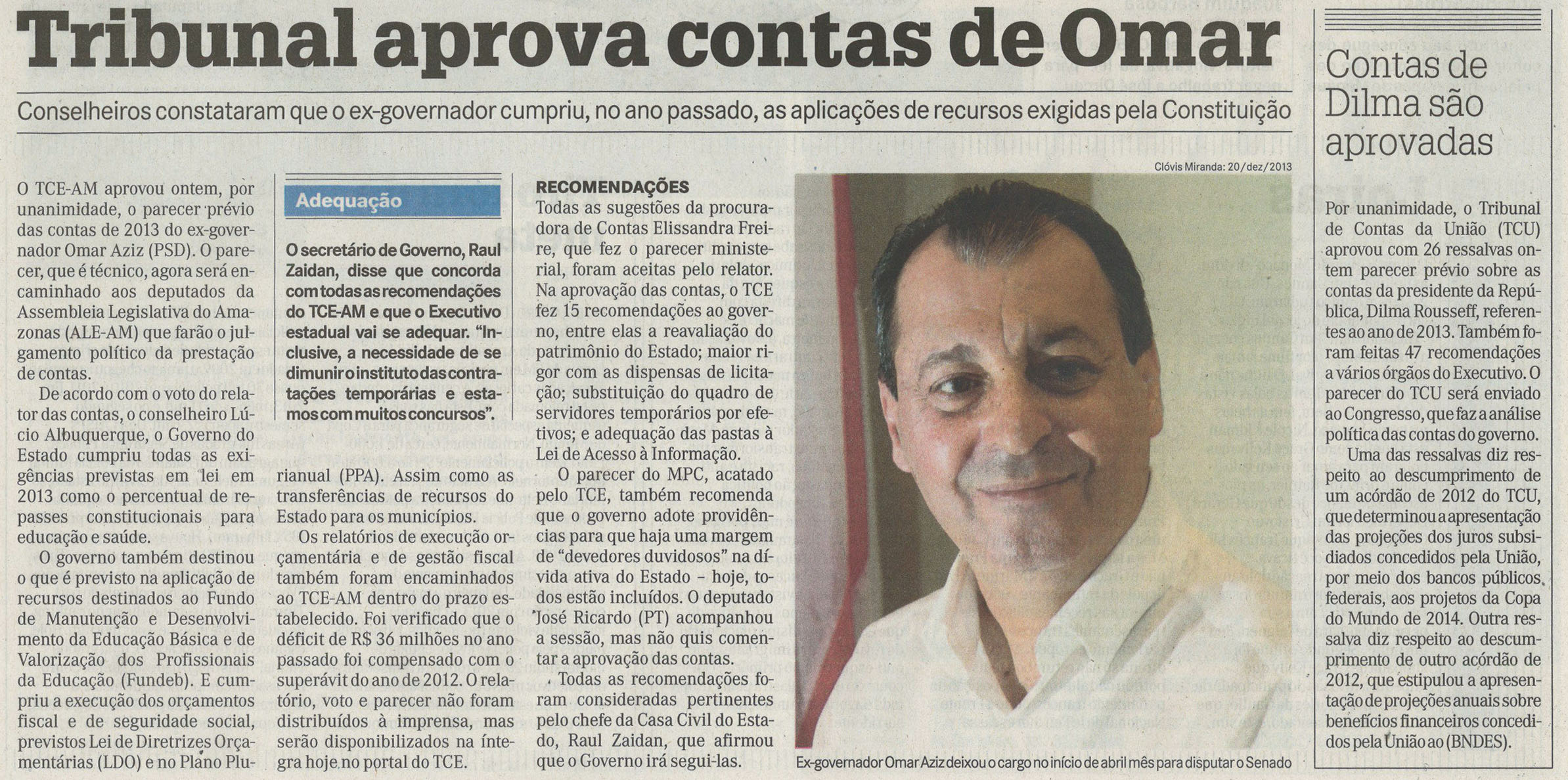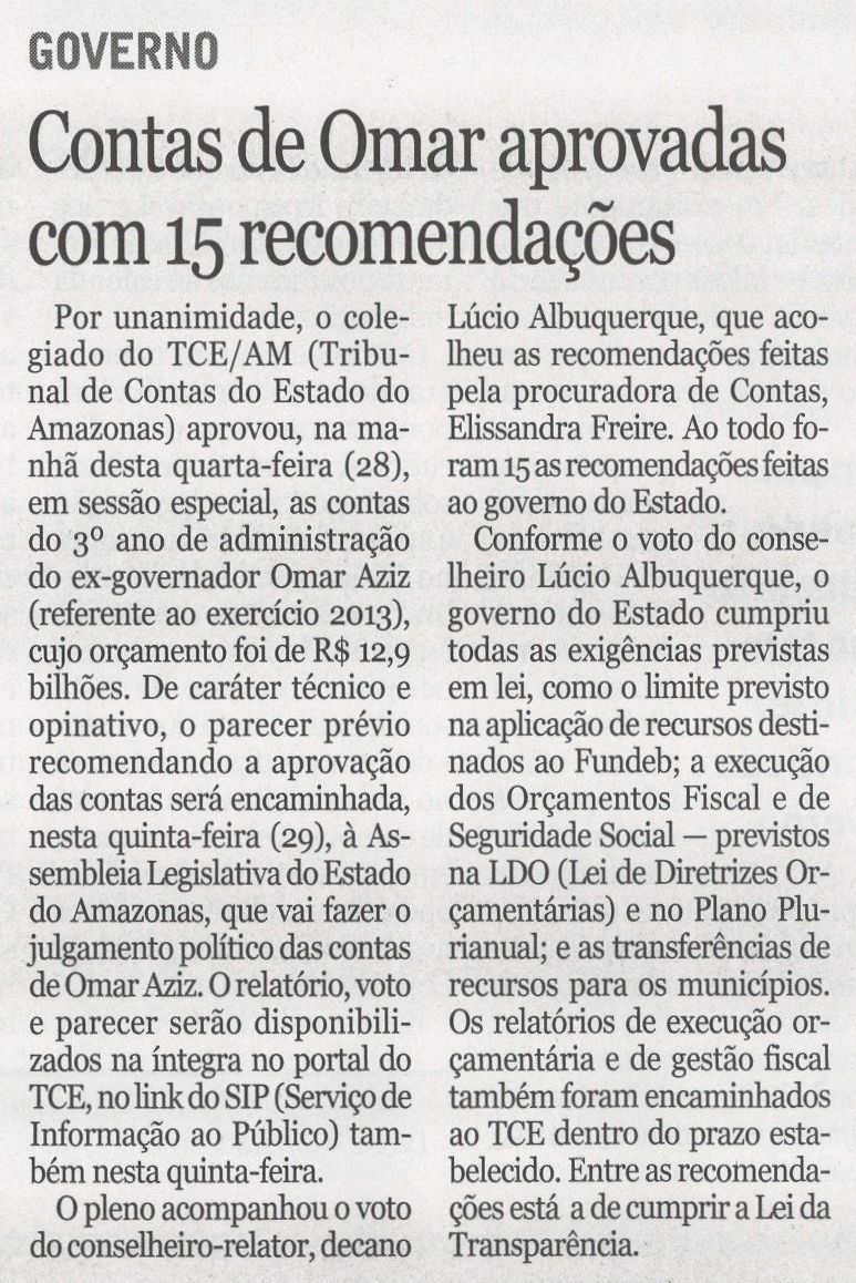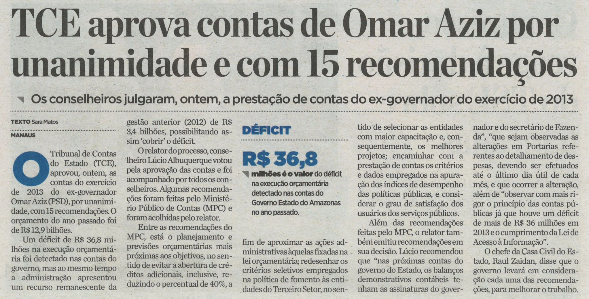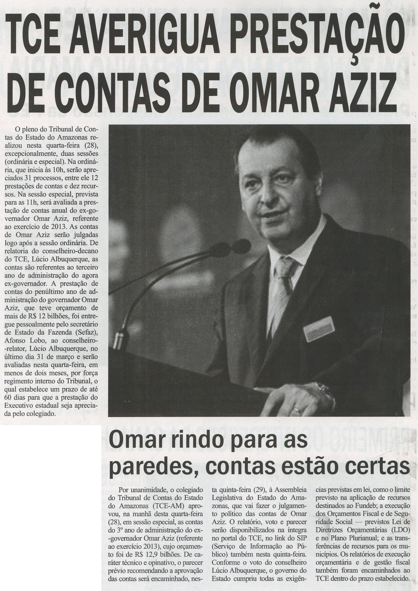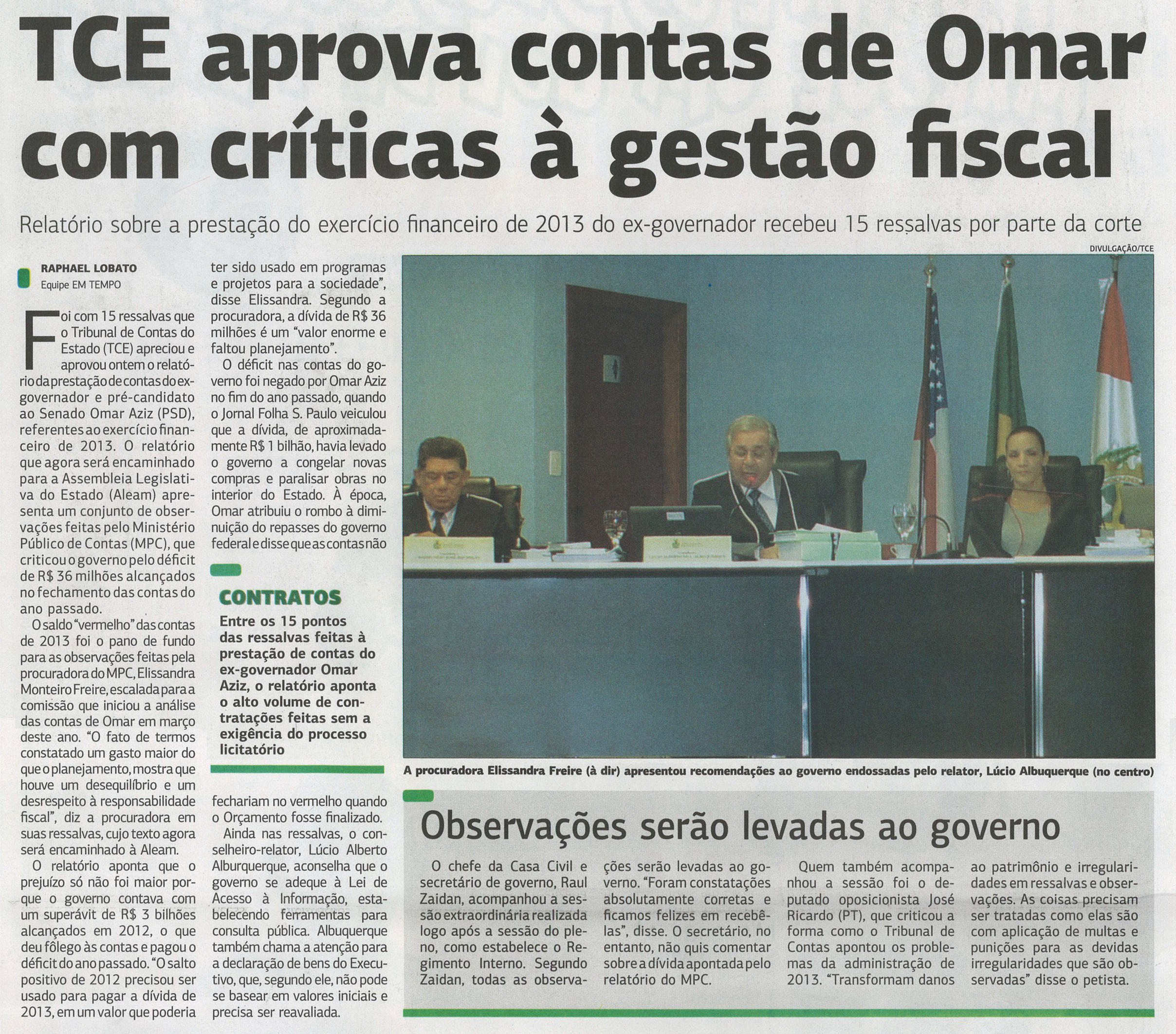 TCE aprova contas de Omar com críticas à gestão fiscal |