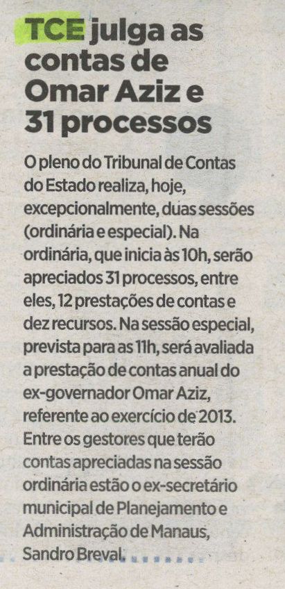 TCE julga contas de Omar Aziz na próxima quarta-feira |