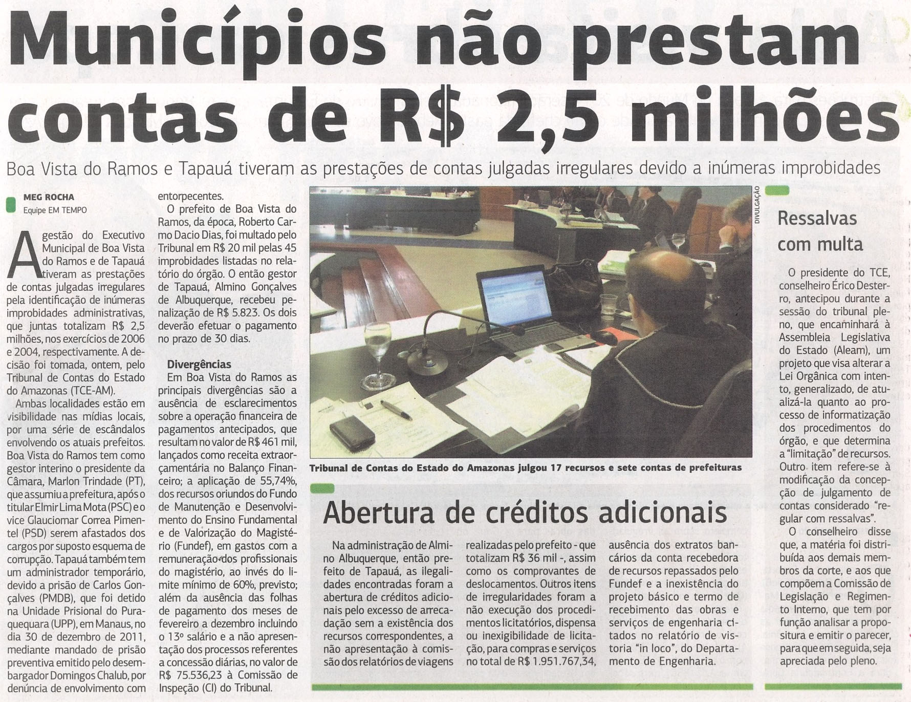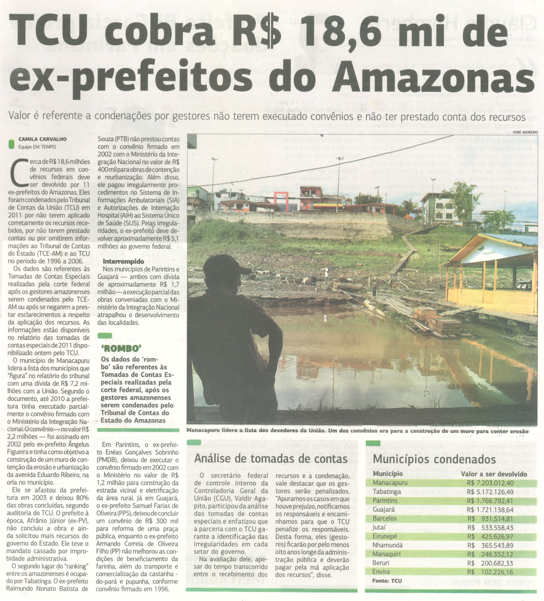 06/01/12 Amazonas em Tempo TCU cobra R$ 18,6 mi de ex-prefeitos do Amazonas