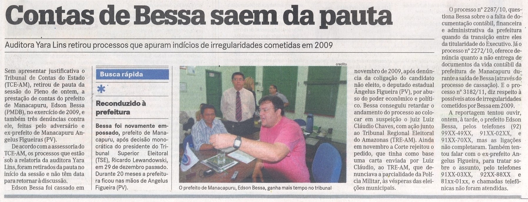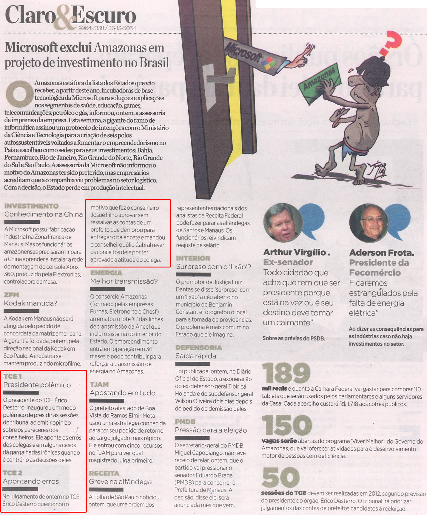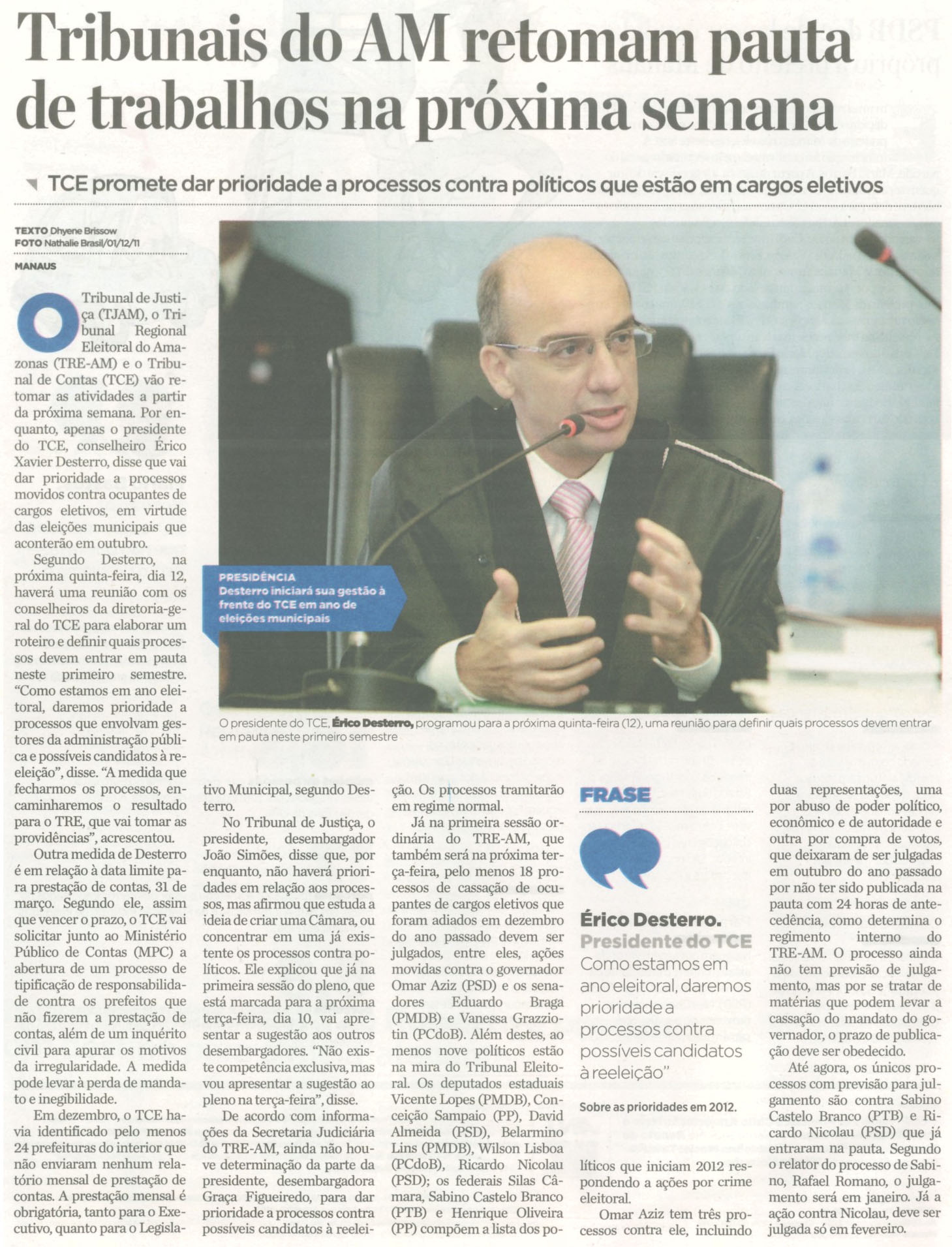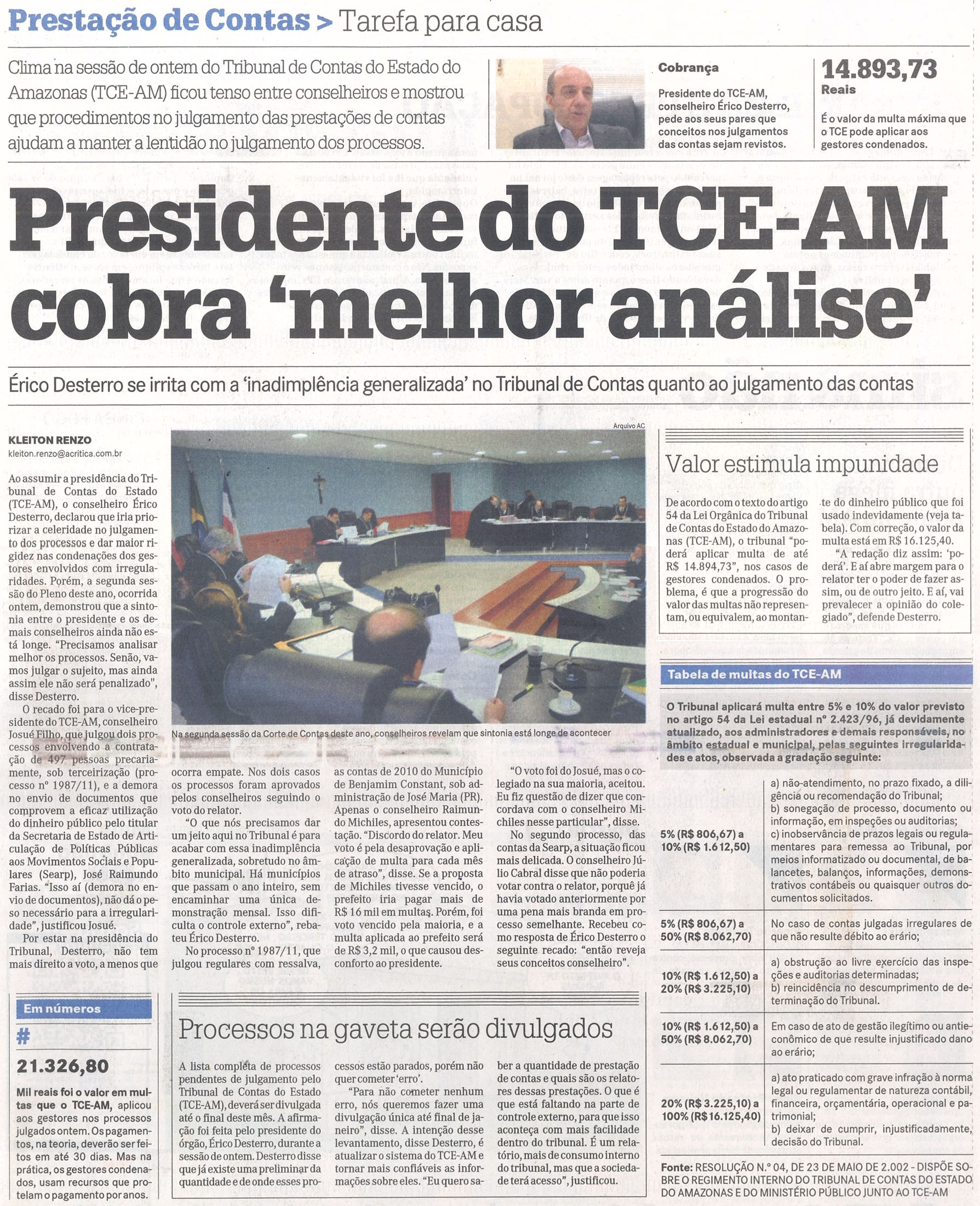 20/01/12 A Crítica Presidente do TCE-AM cobra 'melhor análise'