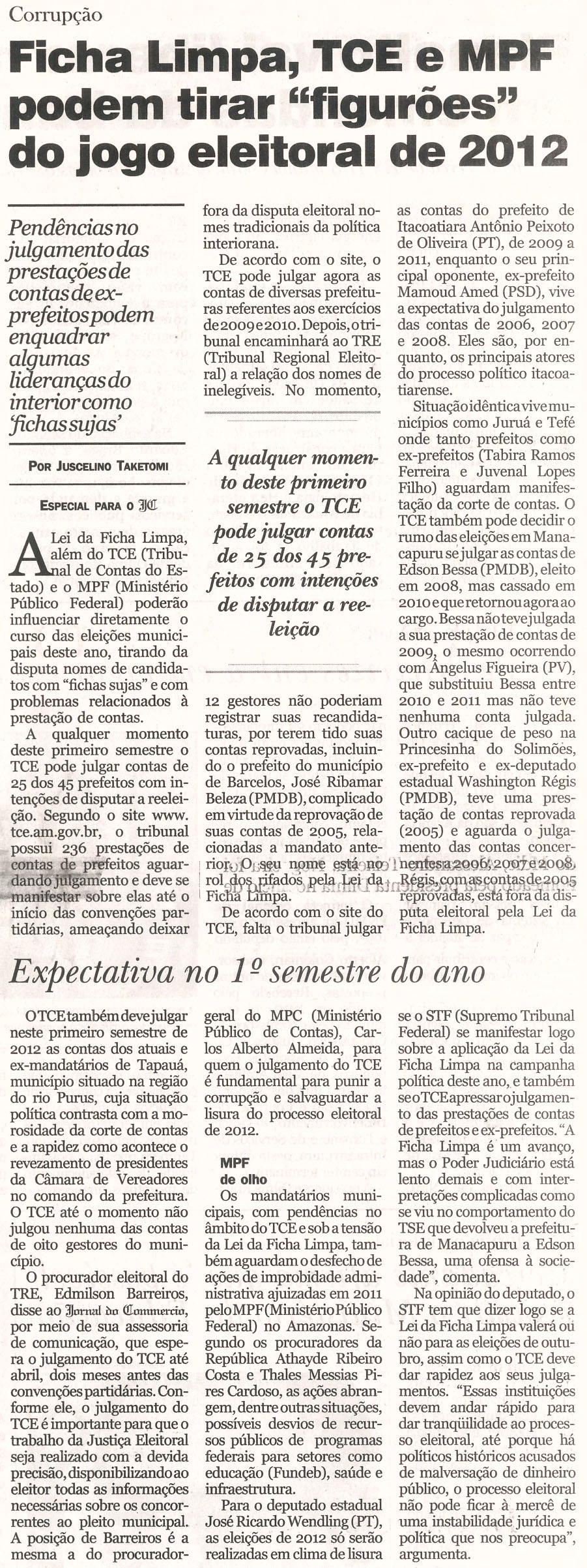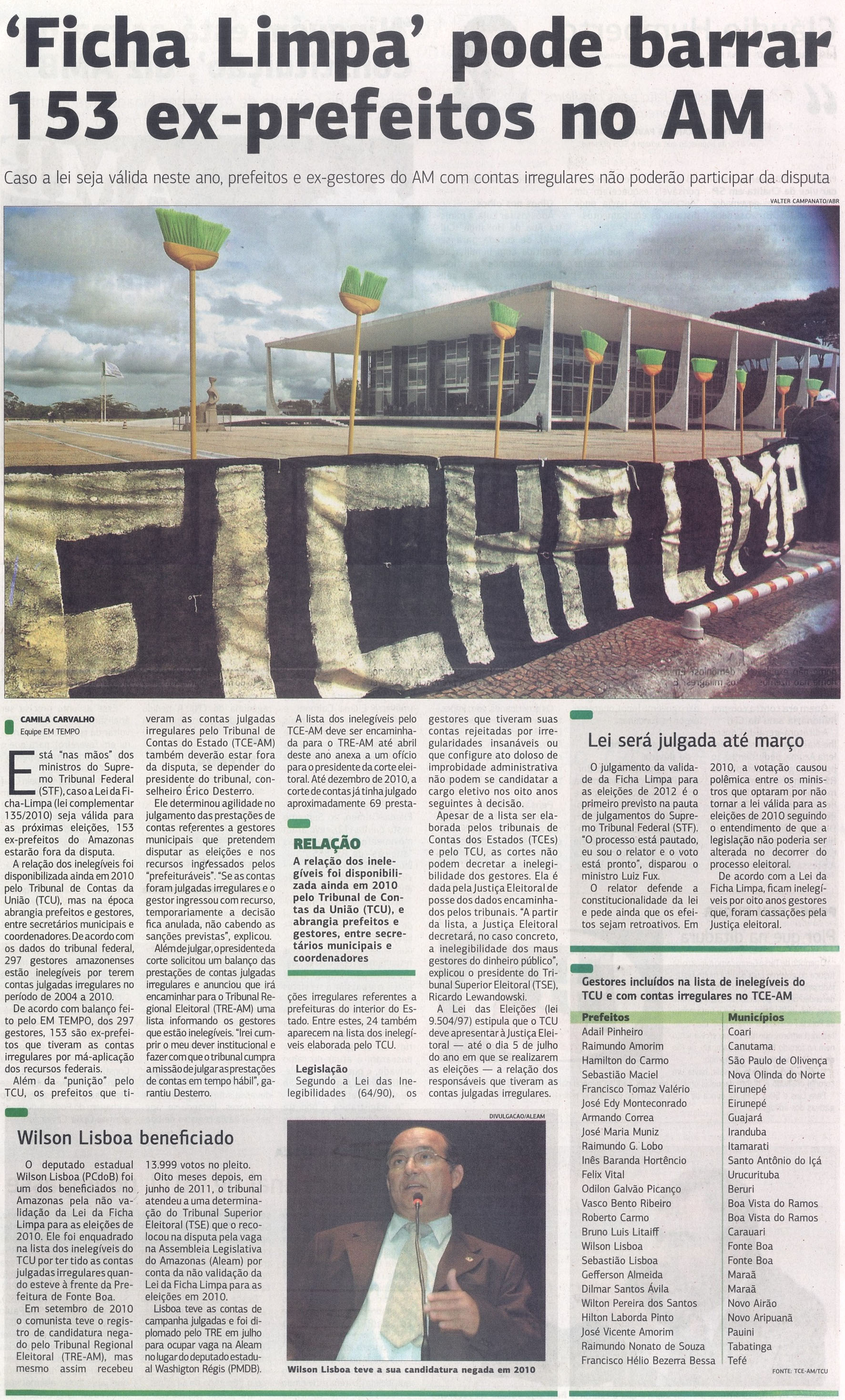 14/01/12 Amazonas em Tempo 'Ficha Limpa' pode barrar 153 ex-prefeitos no AM
