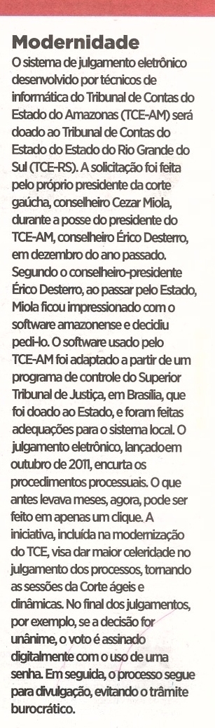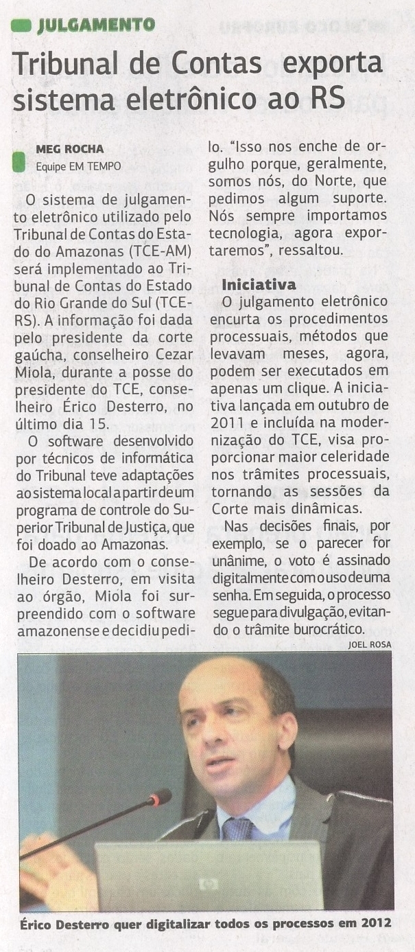 10/01/12 Amazonas em Tempo Tribunal de Contas exporta sistema eletrônico ao RS
