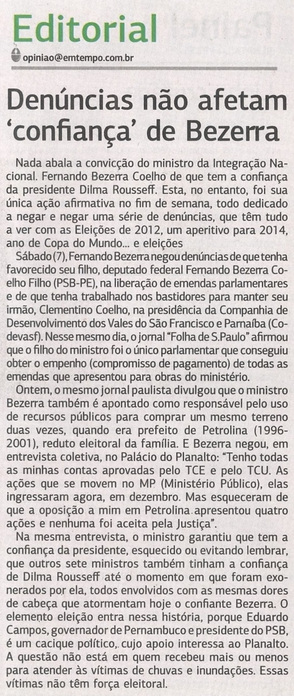 10/01/12 Amazonas em Tempo Denúncias não afetam 'confiança' de Bezerra