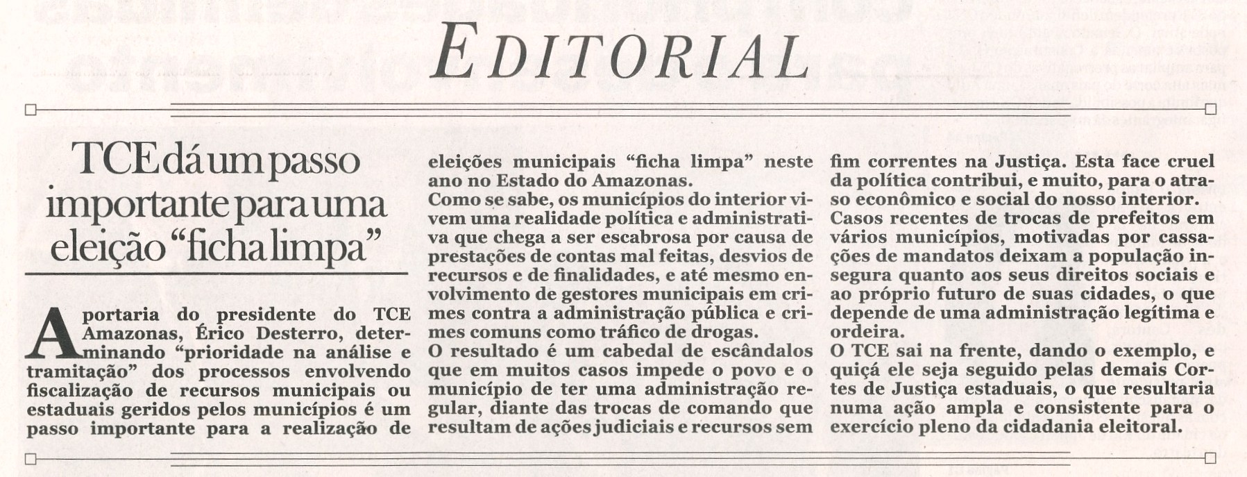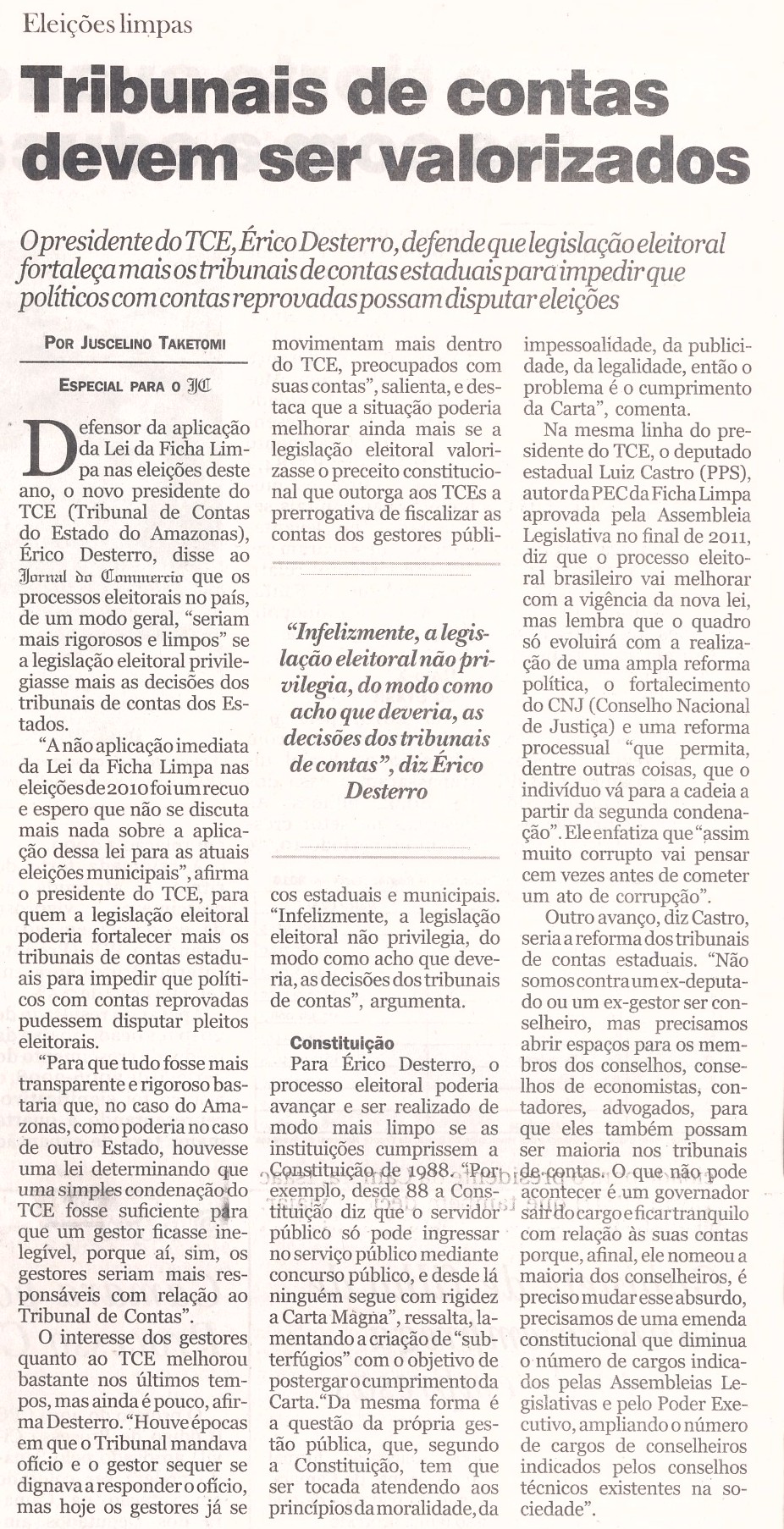 11/01/12 Jornal do Commercio TCE dá um passo importante para uma eleição "ficha limpa"
