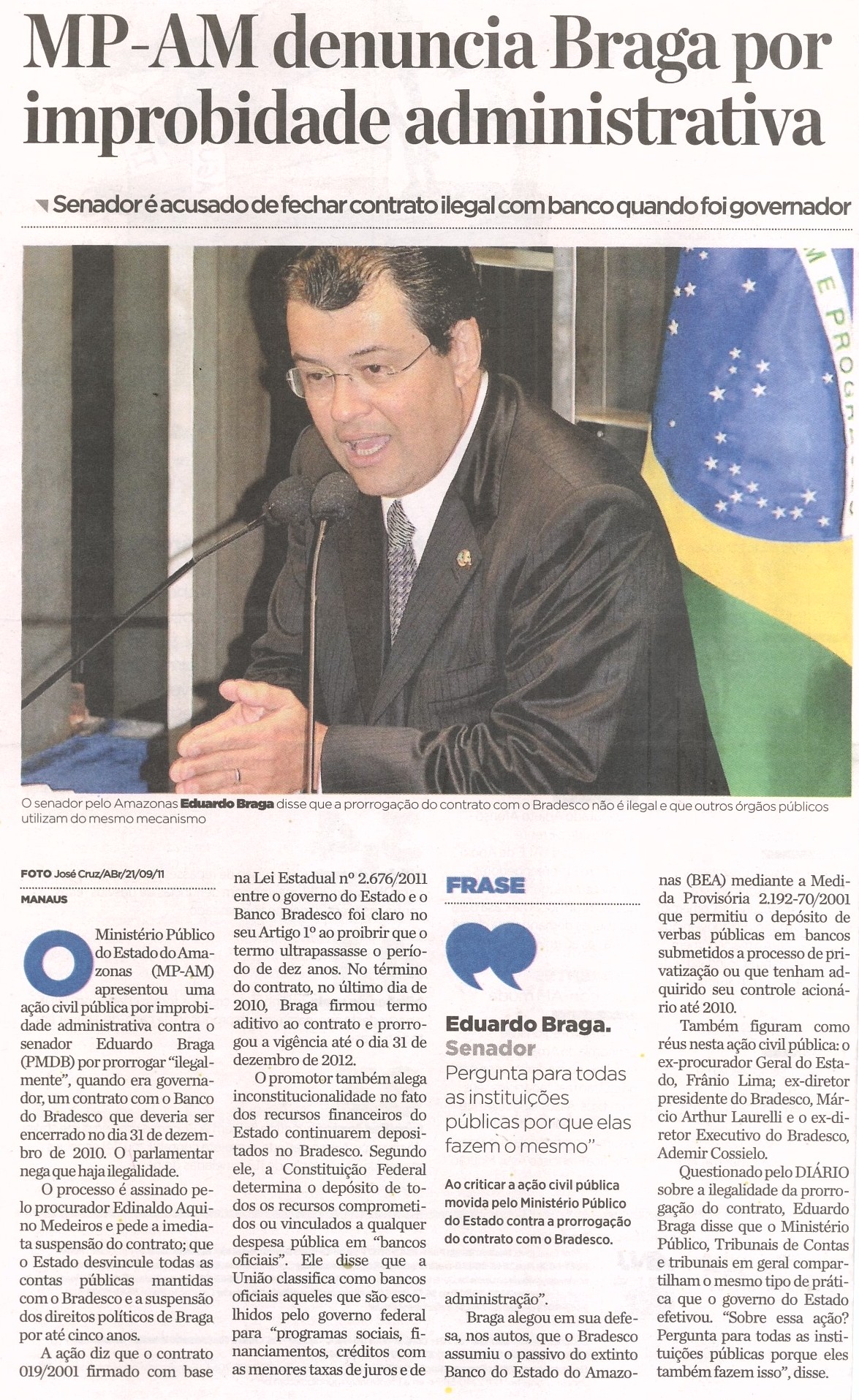 12/01/12 Diário do Amazonas MP-AM denuncia Braga por improbidade administrativa