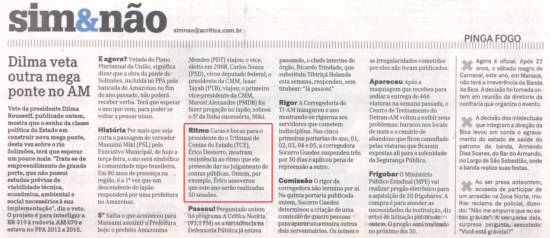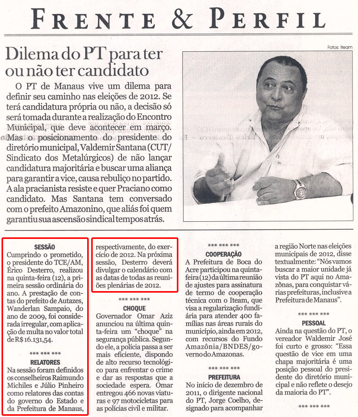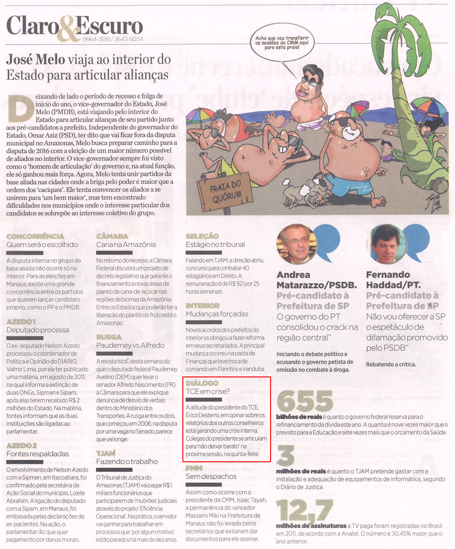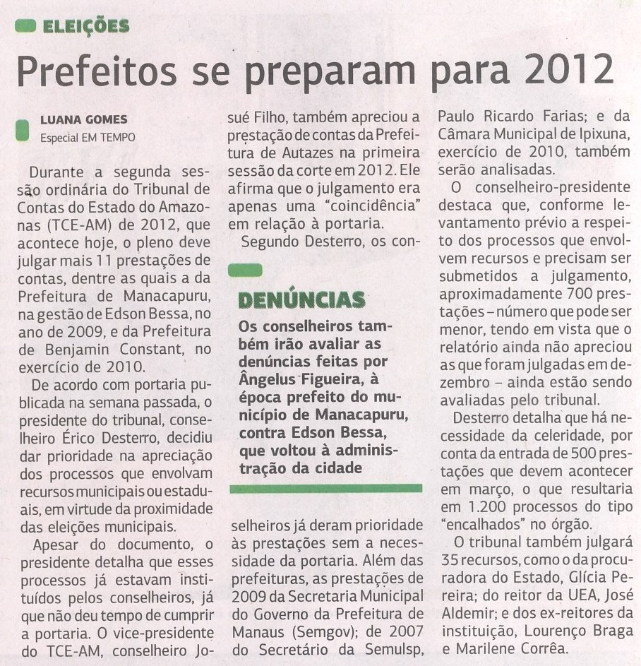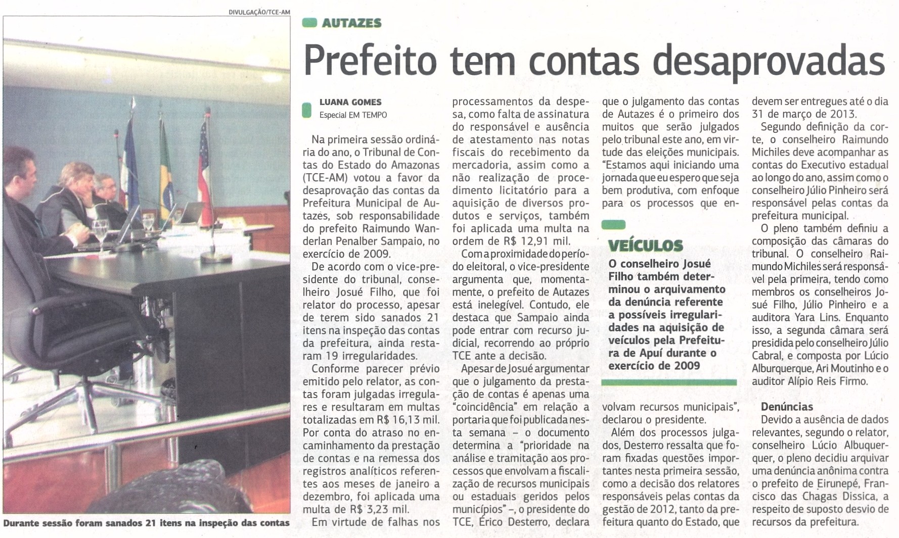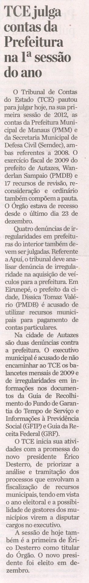 12/01/12 Diário do Amazonas TCE julga contas da Prefeitura na 1ª sessão do ano