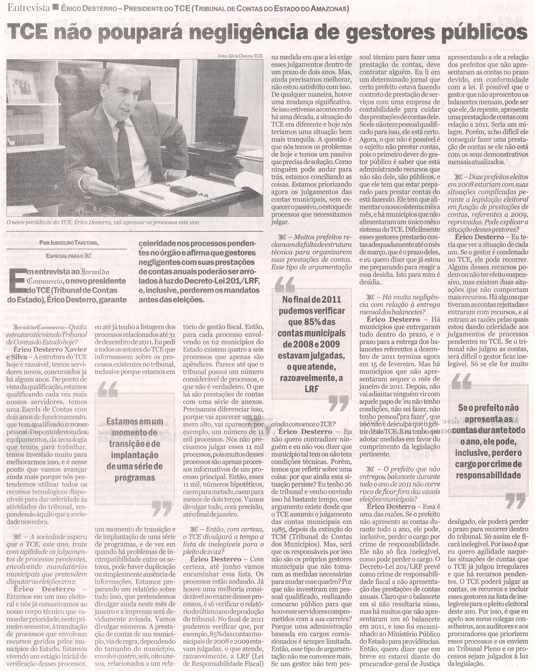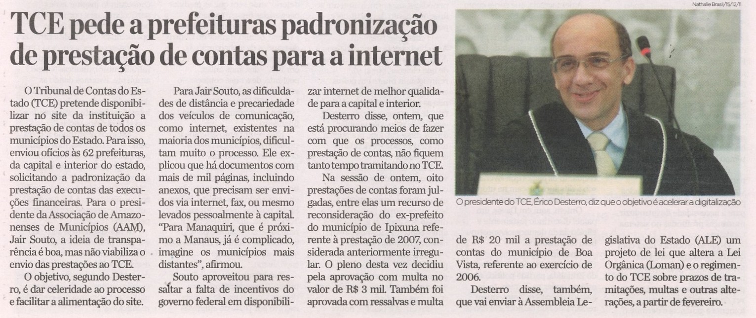 27/01/12 Diário do Amazonas TCE pede a prefeituras padronização de prestação de contas para a internet