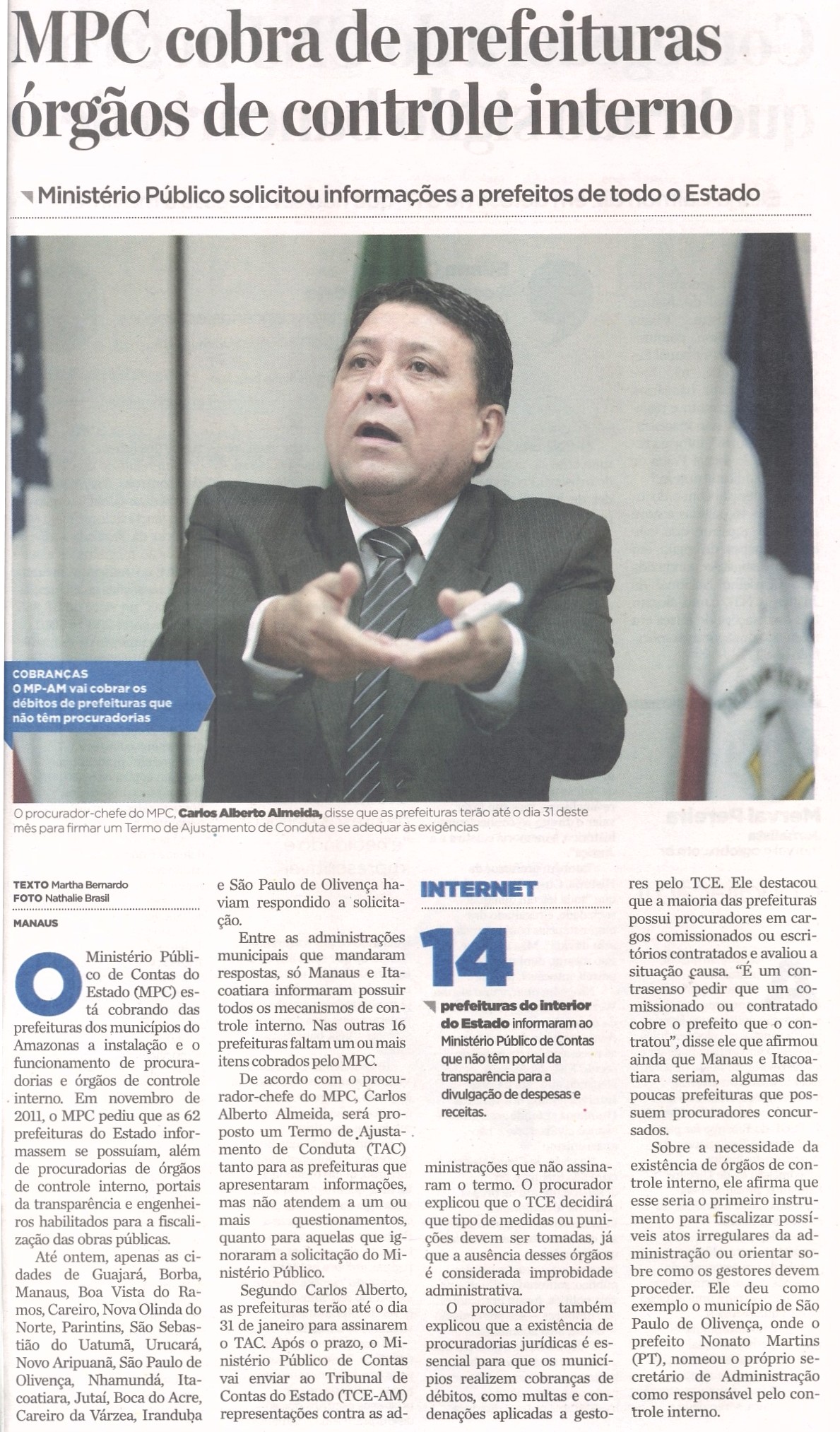 14/01/12 Diário do Amazonas MPC cobra de prefeituras órgãos de controle interno