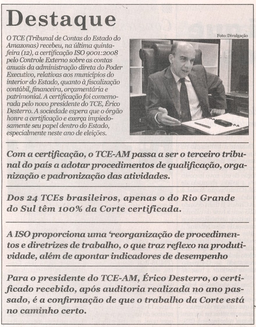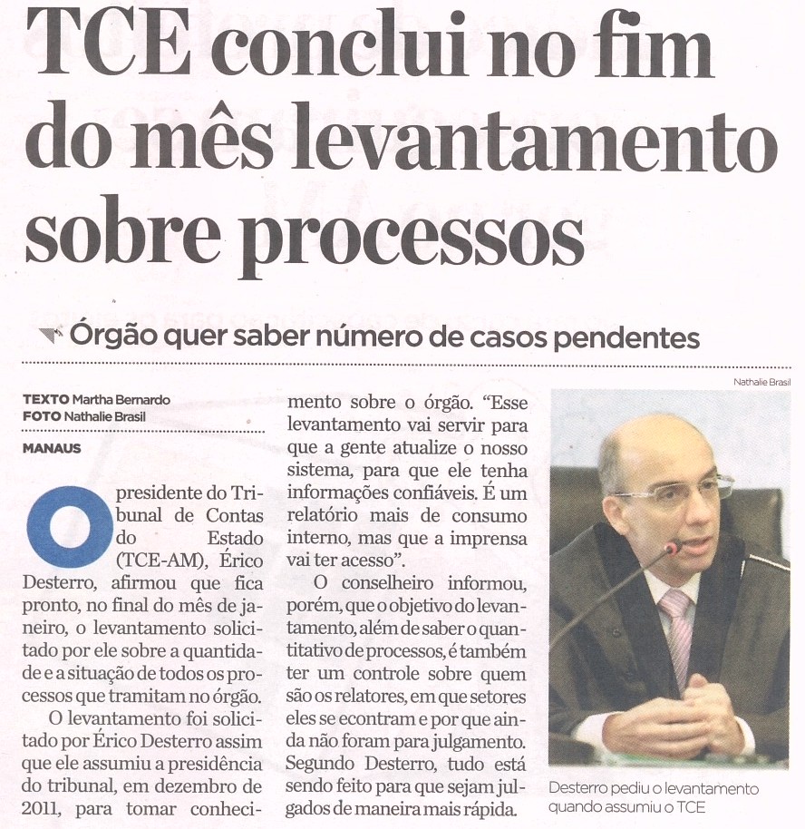 22/01/12 Diário do Amazonas TCE conclui no fim do mês levantamento sobre processos