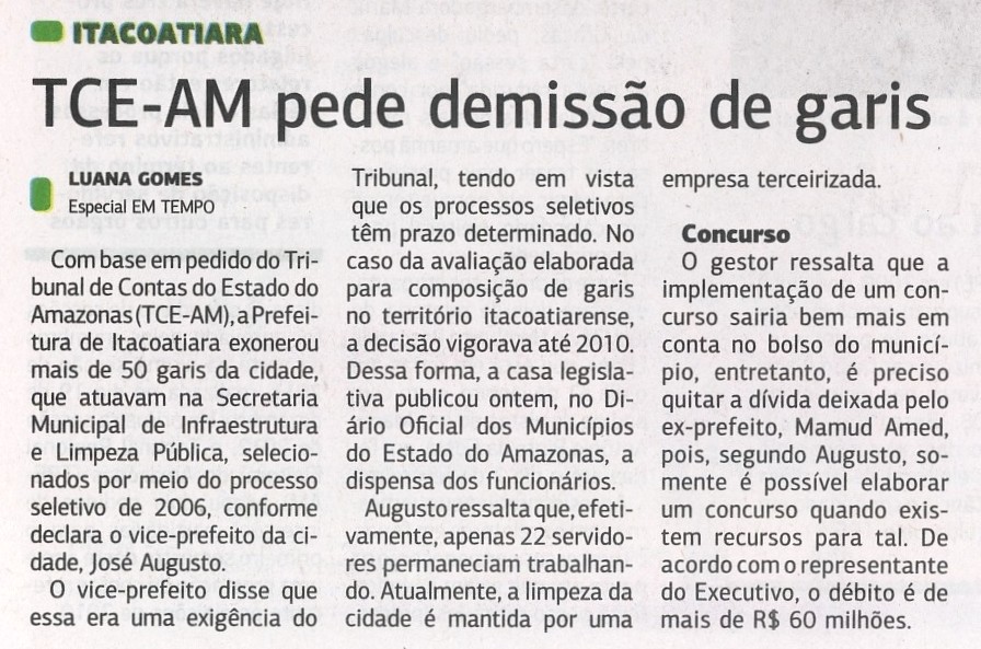 18/01/12 Amazonas em Tempo TCE-AM pede demissão de garis