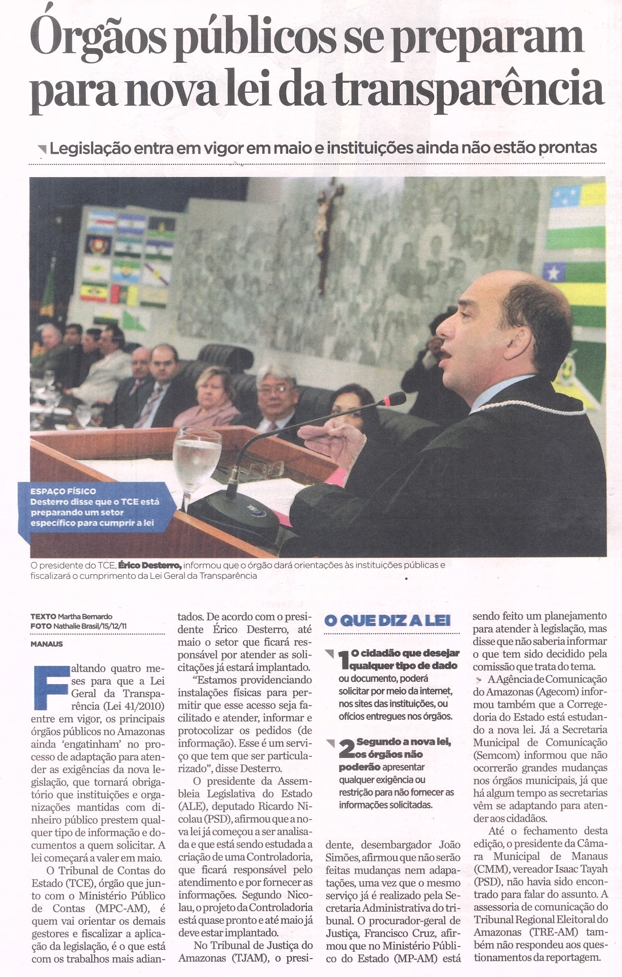 20/01/12 Diário do Amazonas Órgãos públicos se preparam para nova lei da transparência