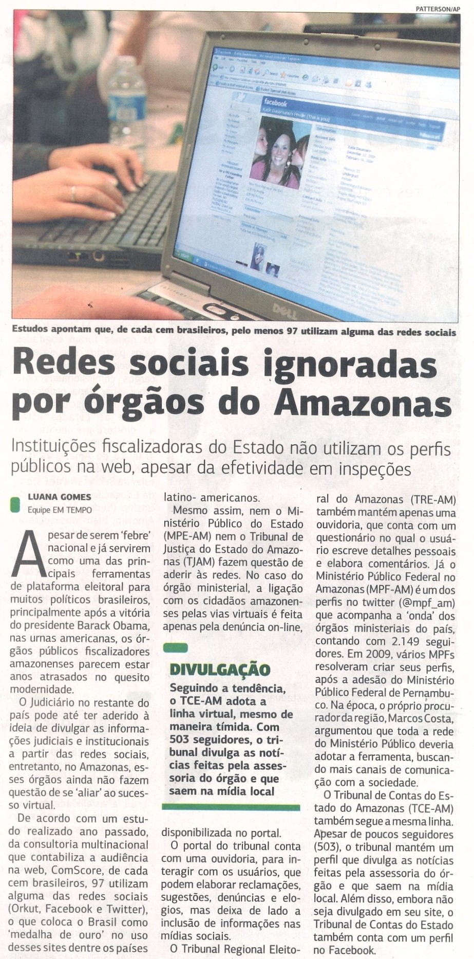 22/01/12 Amazonas em Tempo Redes sociais ignoradas por órgãos do Amazonas