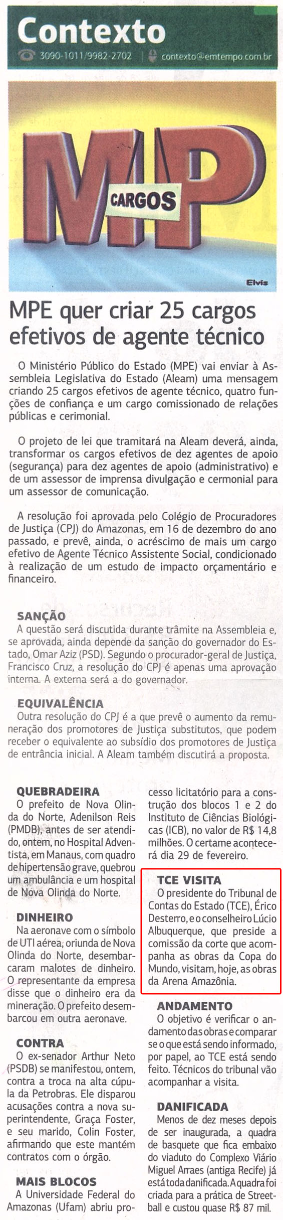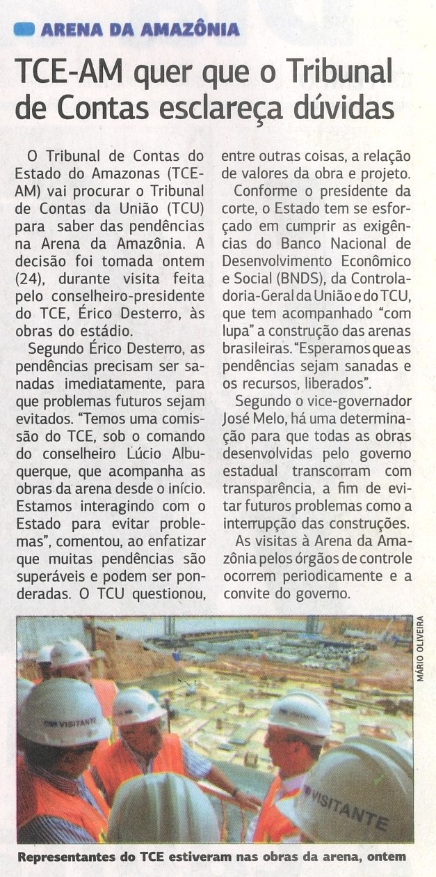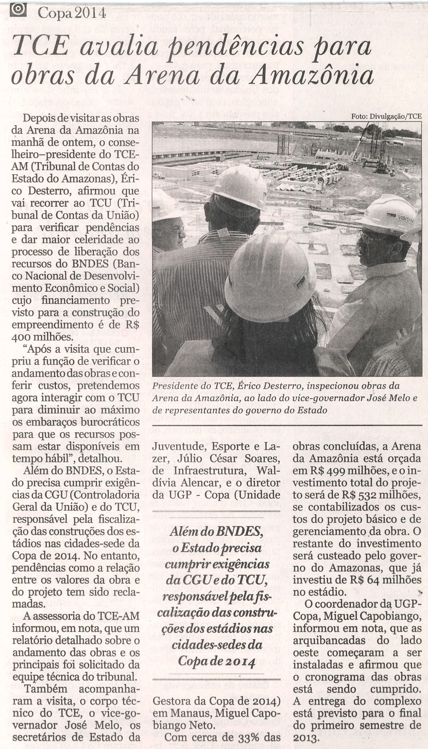 25/01/12 Jornal do Commercio TCE avalia pendências para obras da Arena da Amazônia