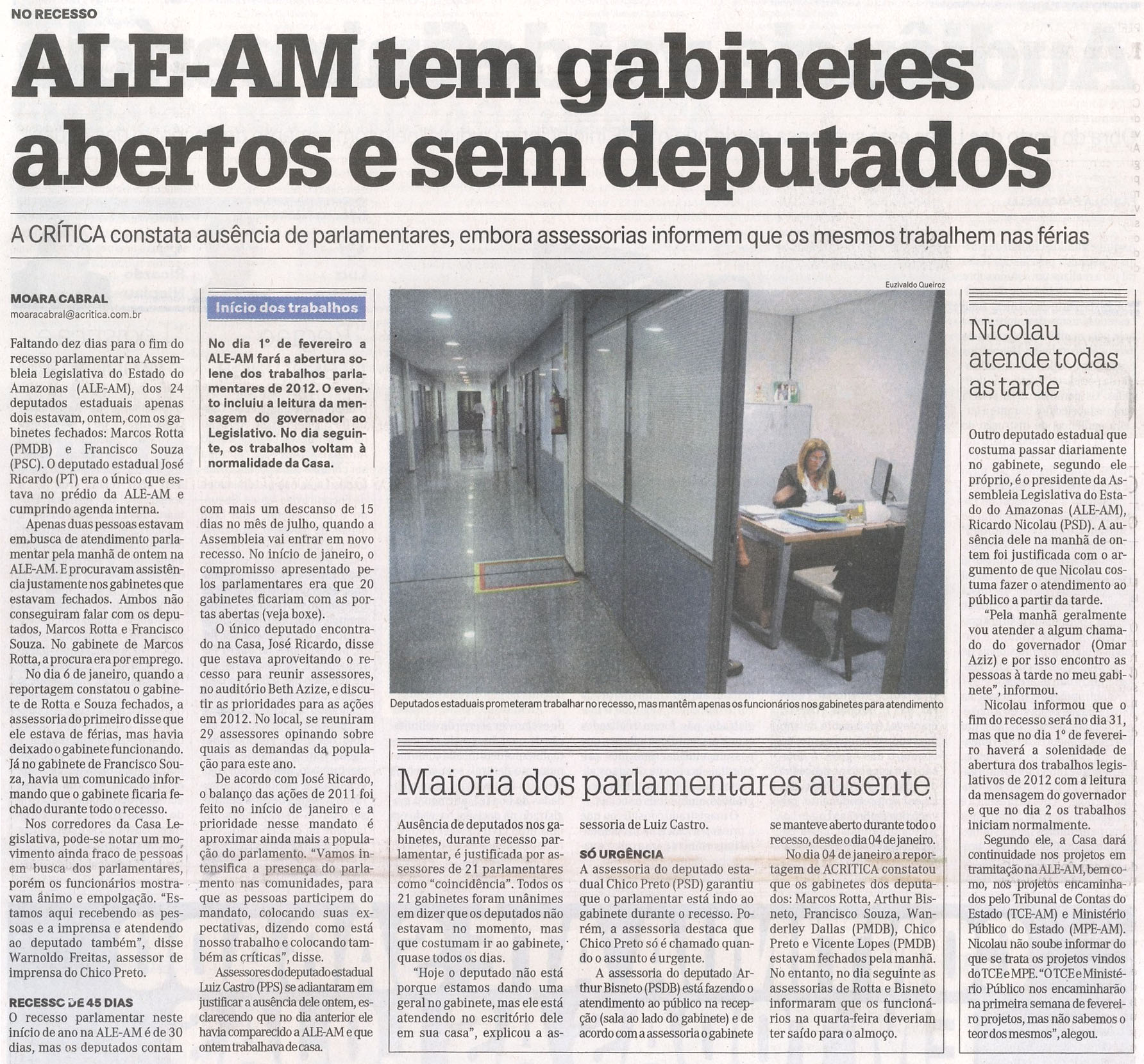 25/01/12 A Crítica ALE-AM tem gabinetes abertos e sem deputados