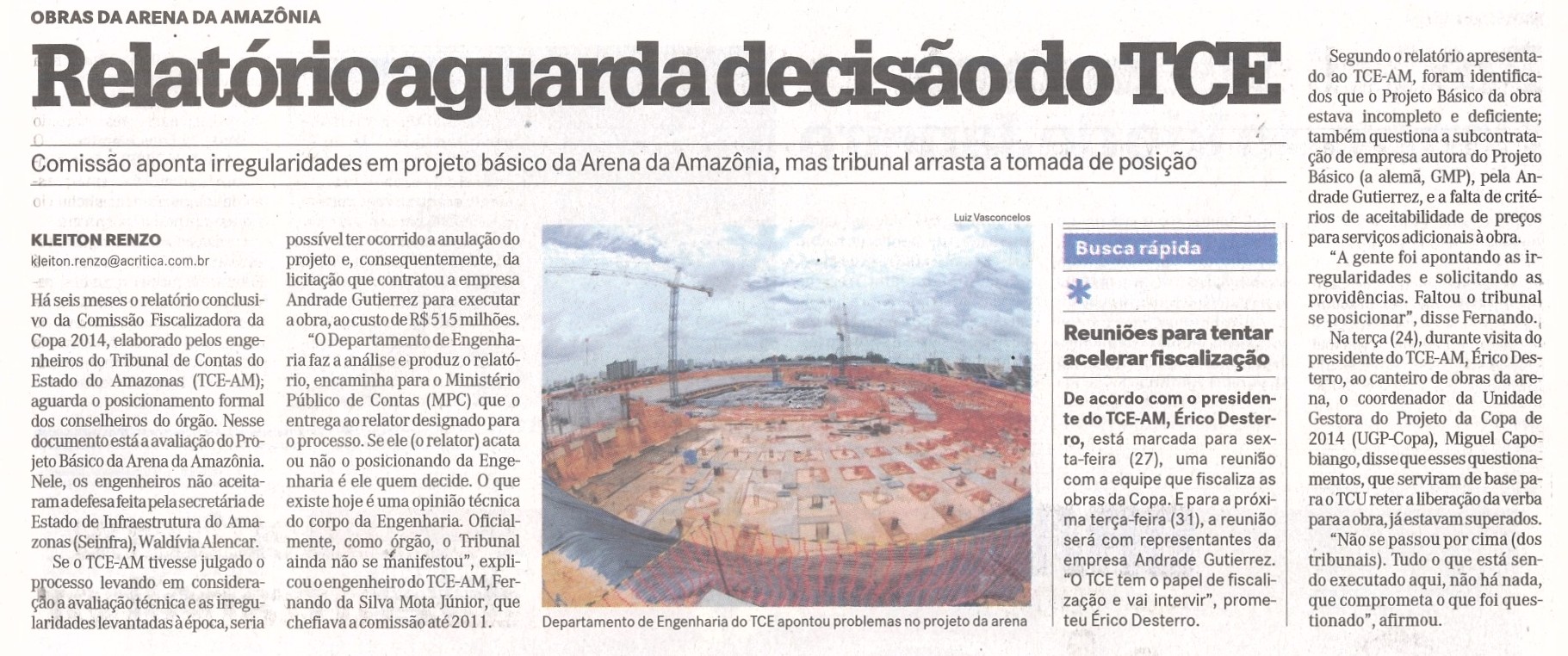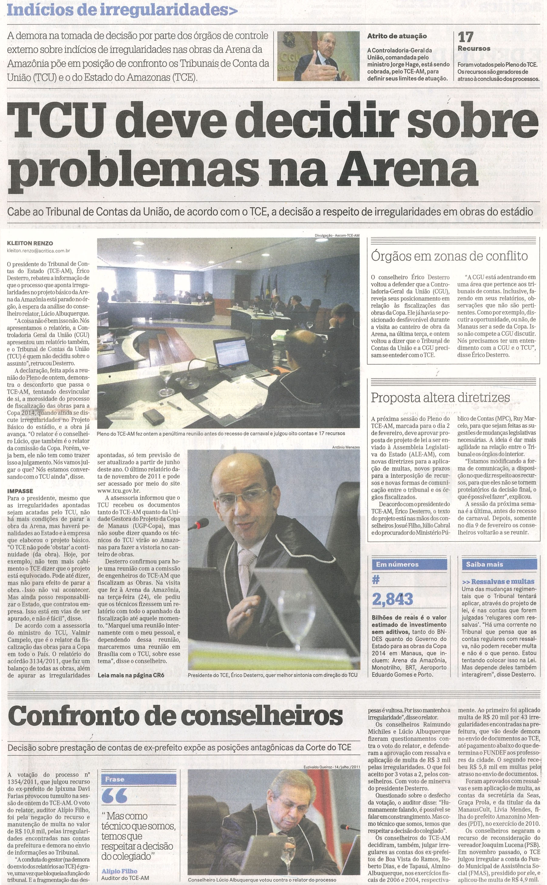 27/01/12 A Crítica TCU deve decidir sobre problemas na Arena