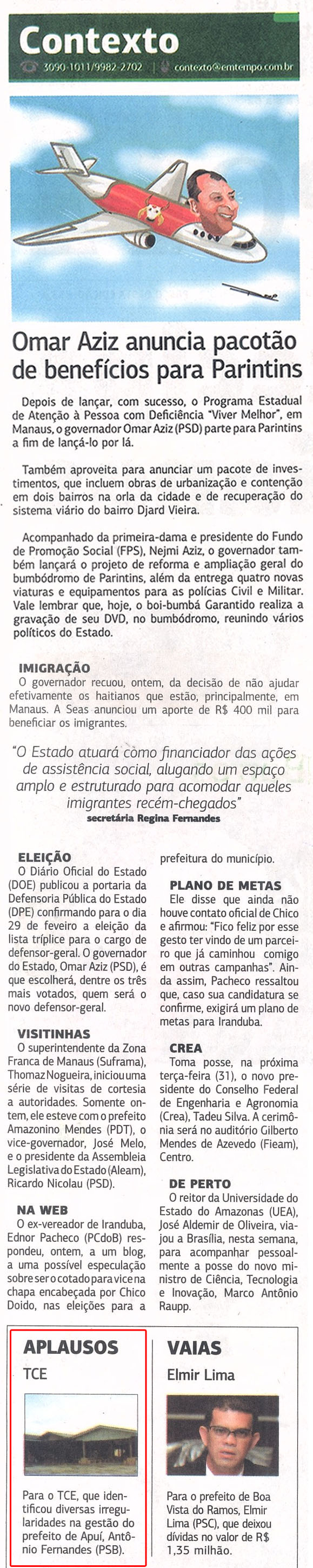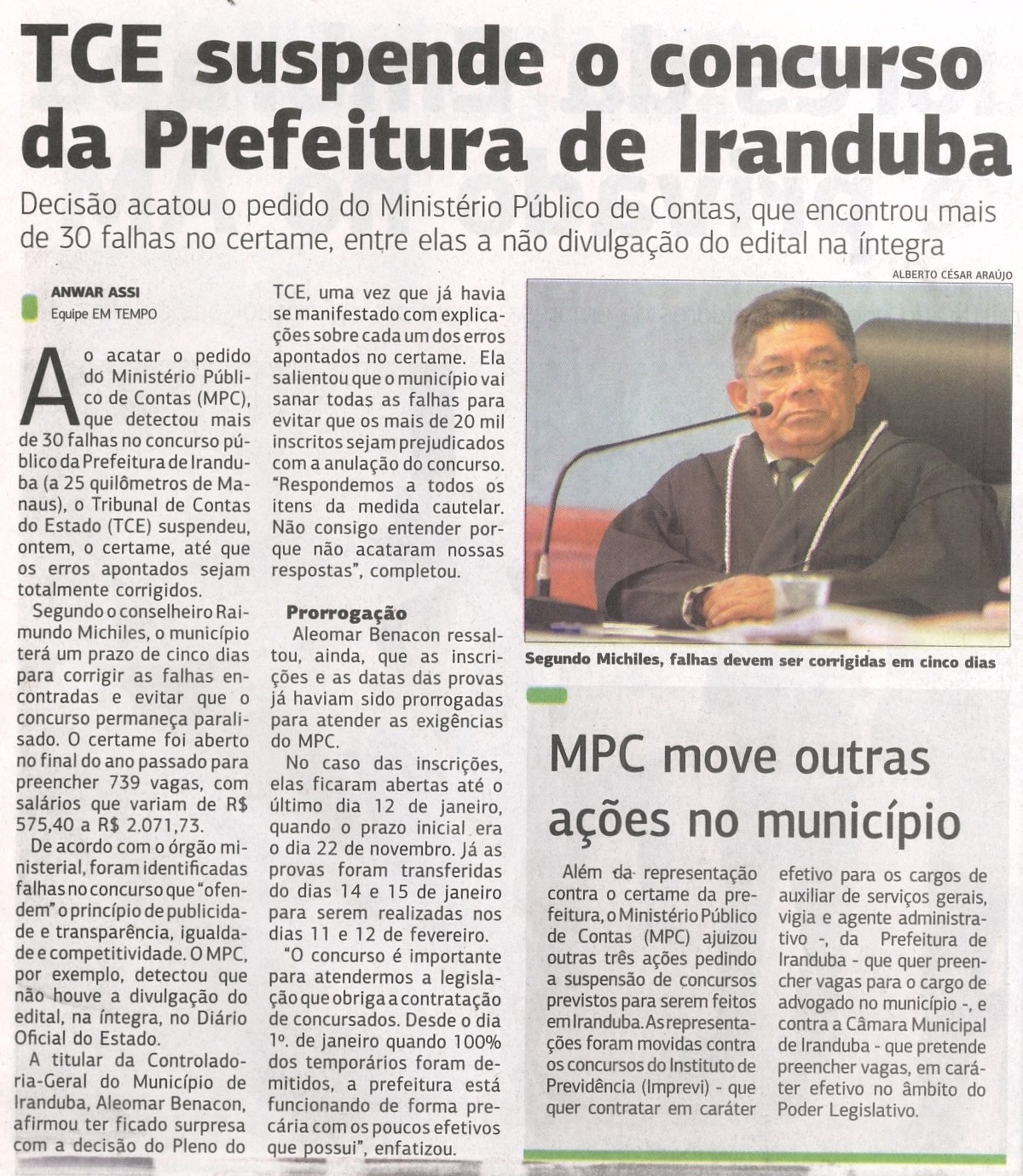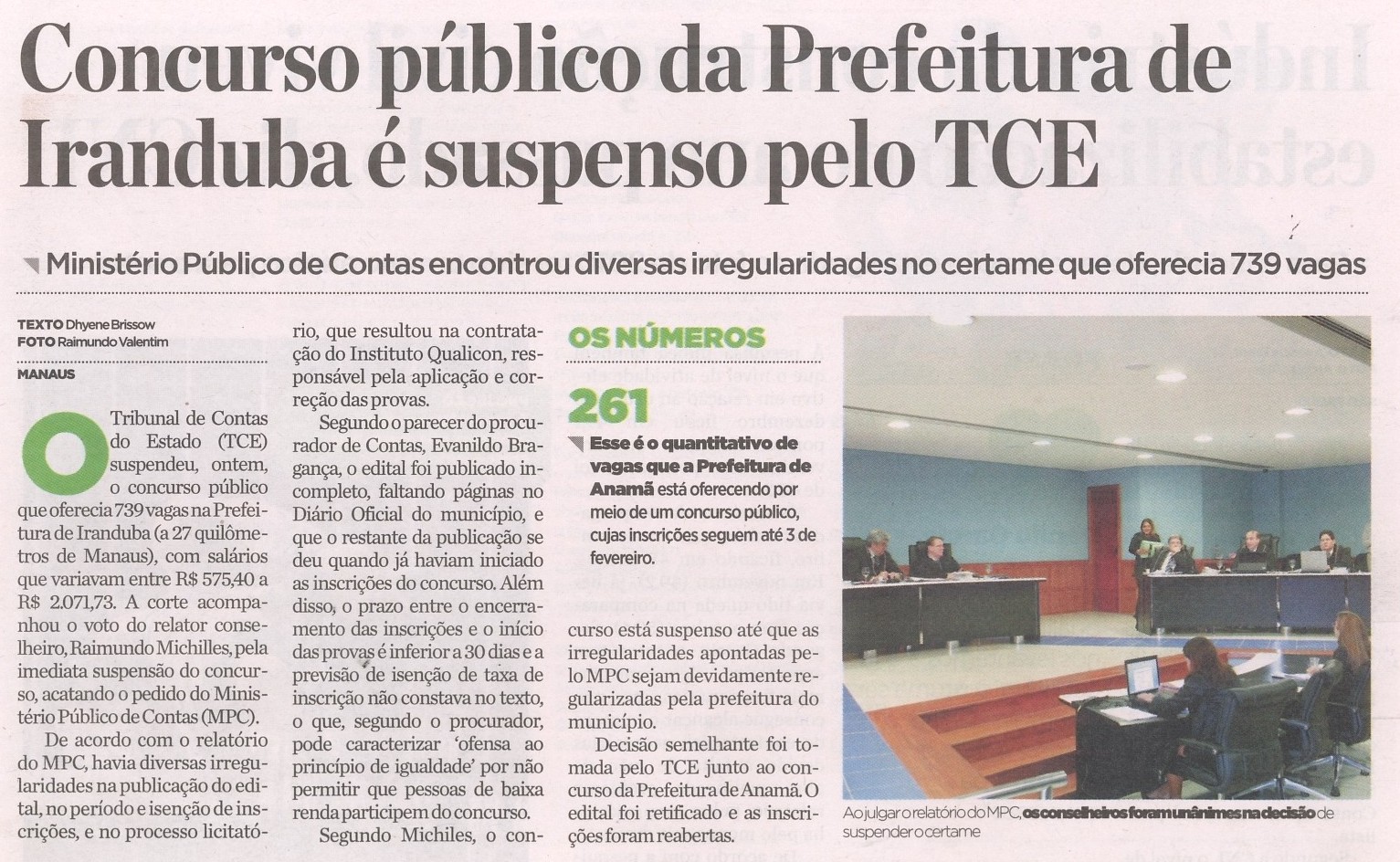 27/01/12 Diário do Amazonas Concurso público da Prefeitura de Iranduba é suspenso pelo TCE