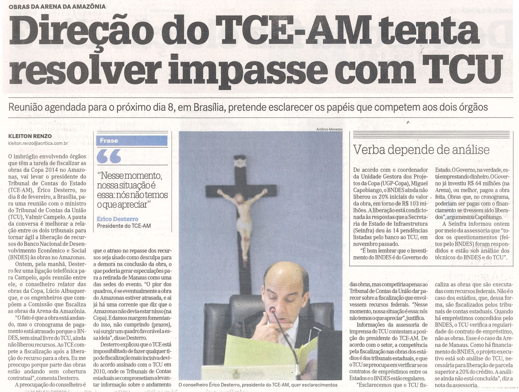 28/01/12 A Crítica Direção do TCE-AM tenta resolver impasse com TCU