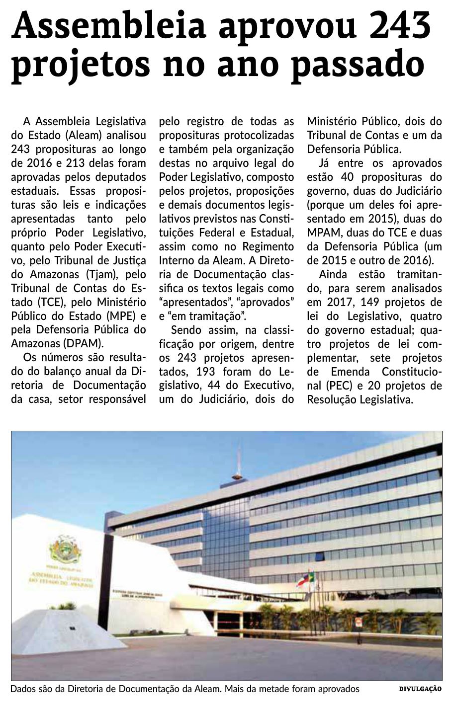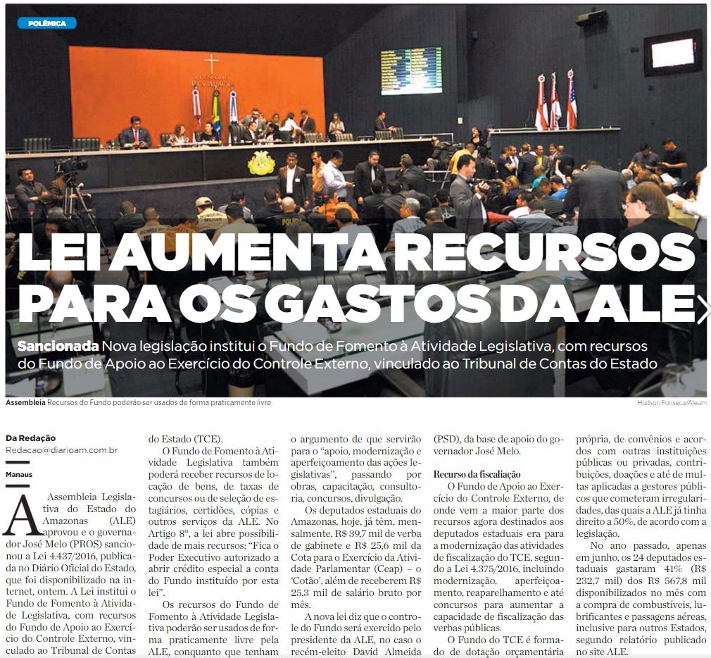 17/01/17 Diário do Amazonas Lei aumenta recursos para os gastos da ALE