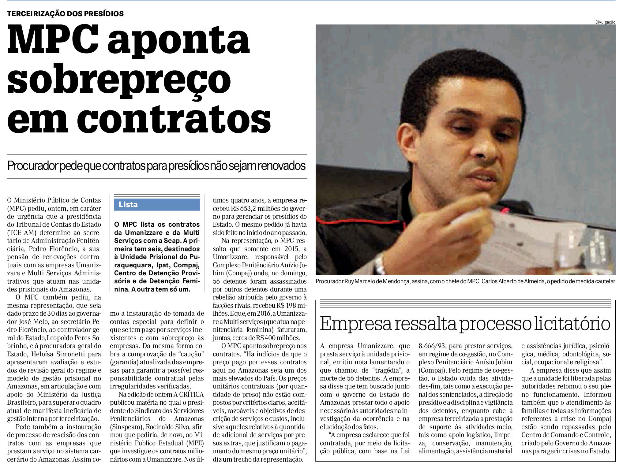 05/01/17 A Crítica  MPC aponta sobrepreço em contratos