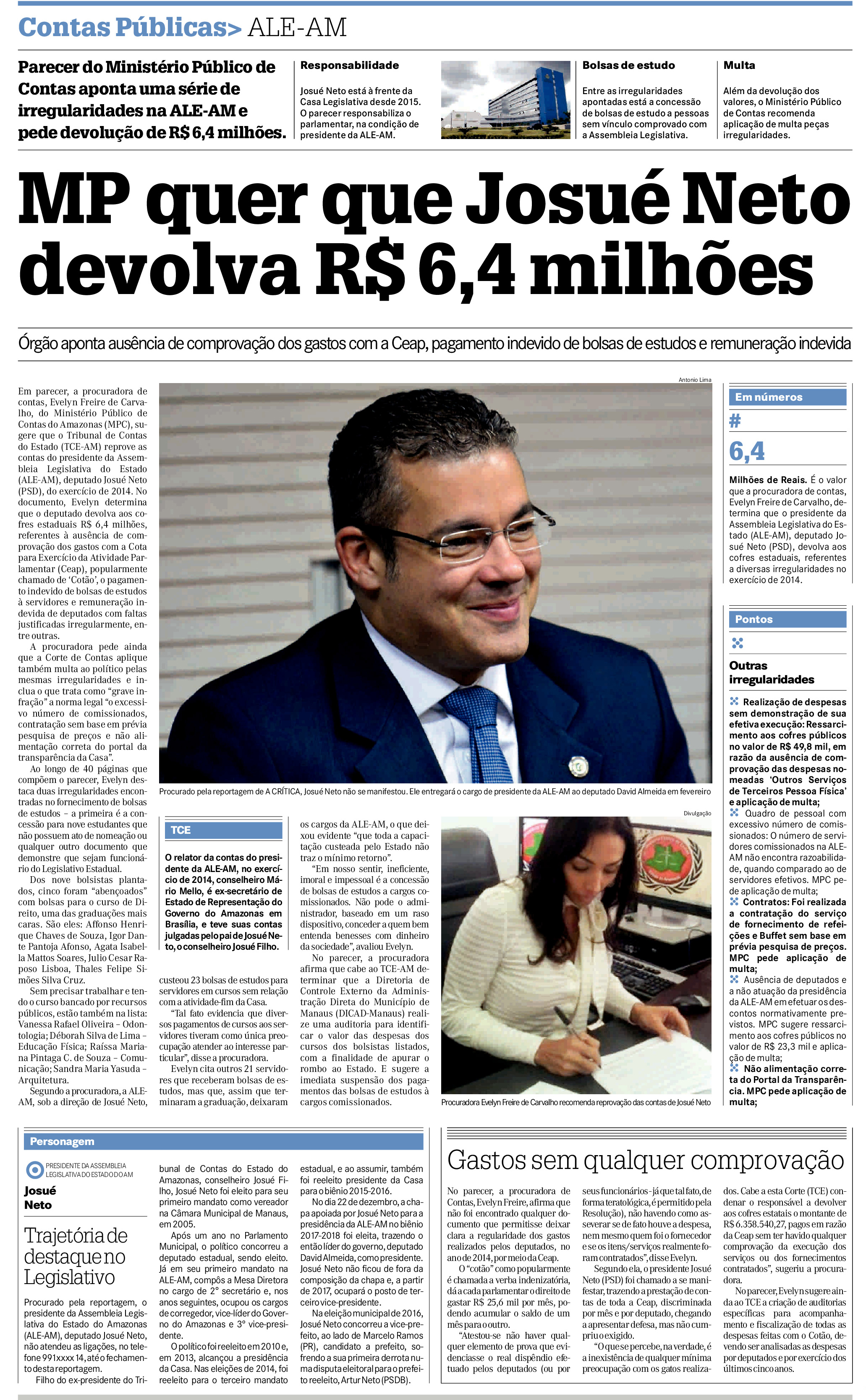 08/01/17 A Crítica  MP quer que Josué Neto devolva R$ 6,4 milhões