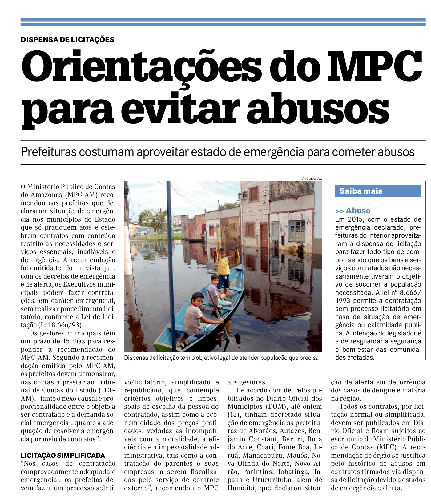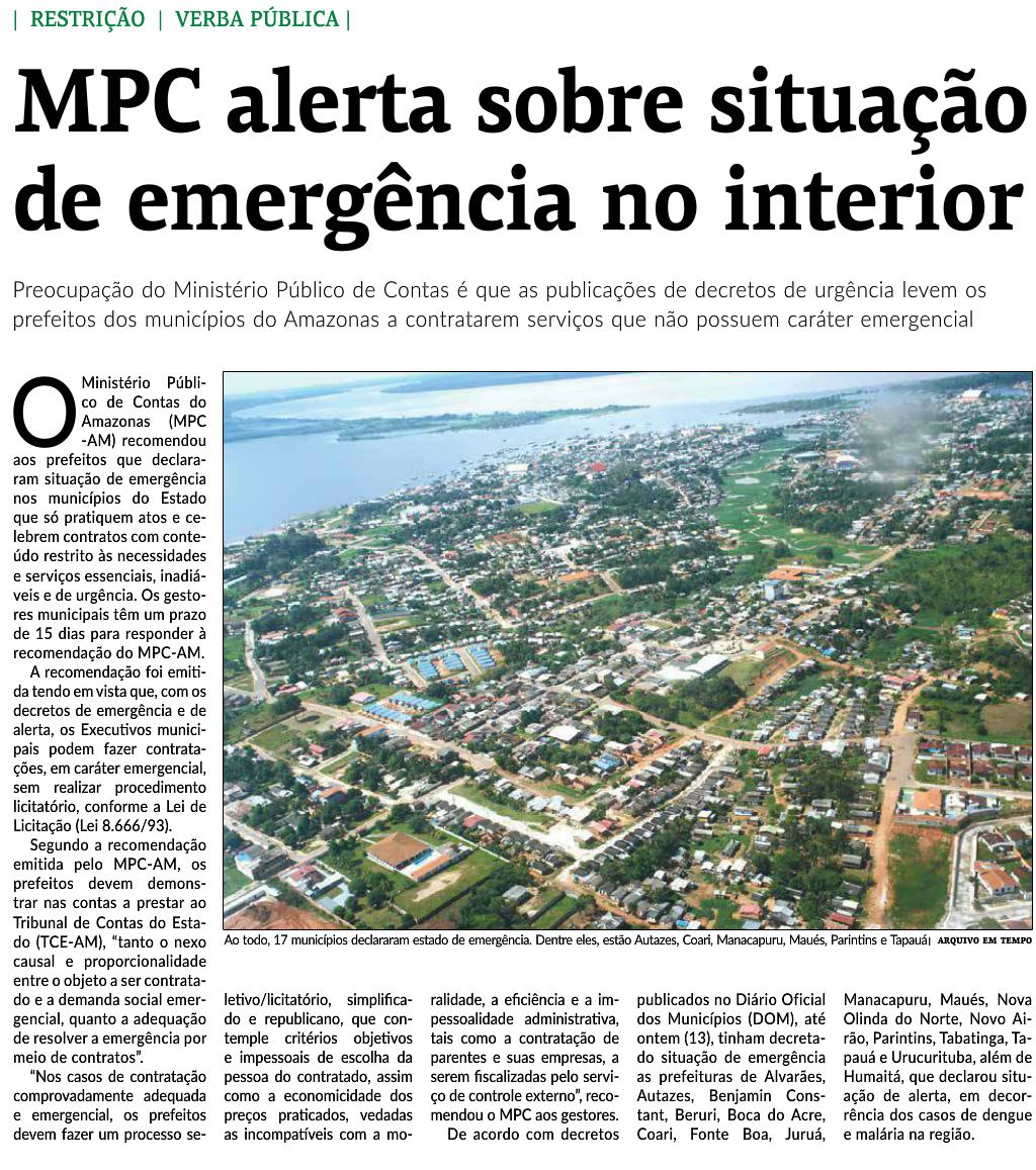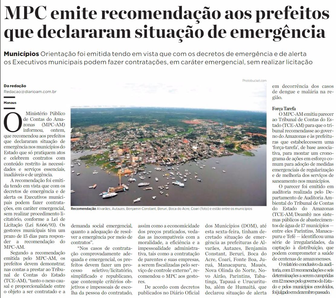 14/01/17 Diário do Amazonas MPC emite recomendação aos prefeitos que declararam situação de emergência