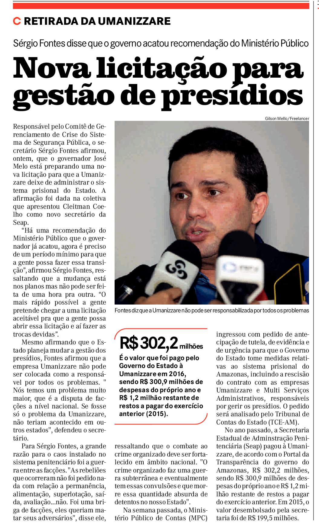 14/01/17 A Crítica  Nova licitação para gestão de presídios