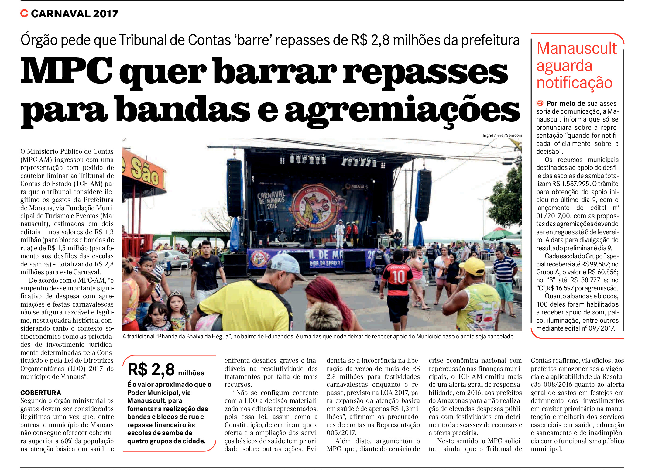 20/01/17 A Crítica  MPC quer barrar repasses para bandas e agremiações