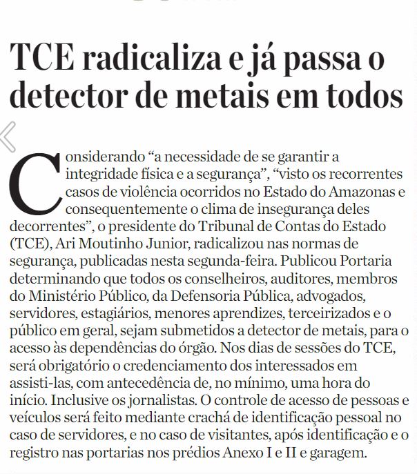24/01/17 Diário do Amazonas TCE radicaliza e já passa o detector de metais em todos