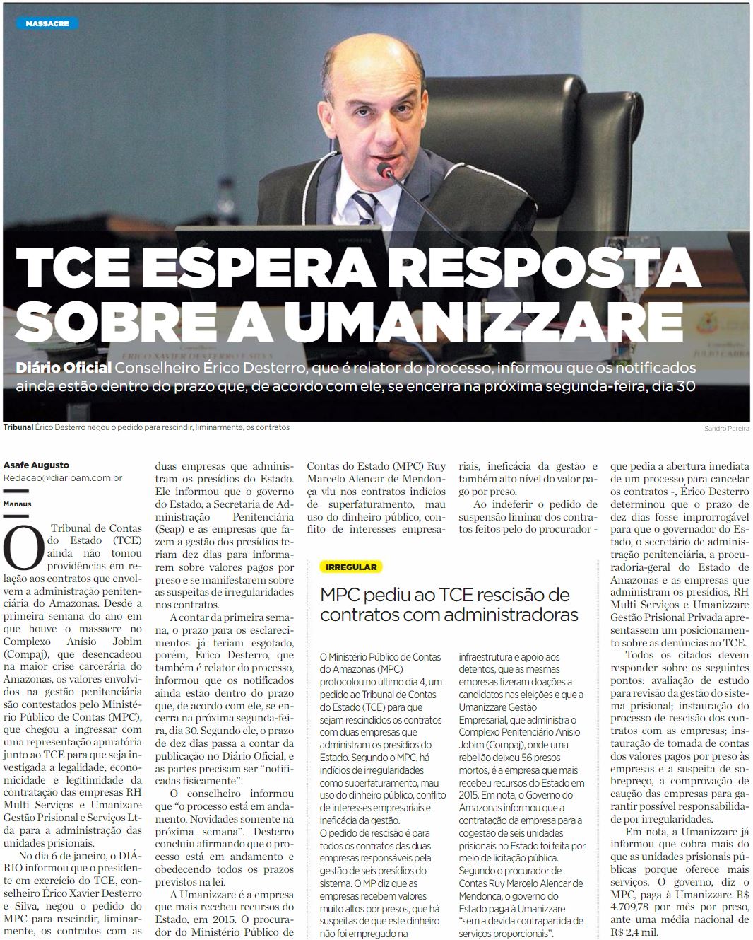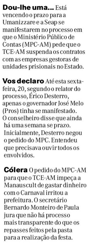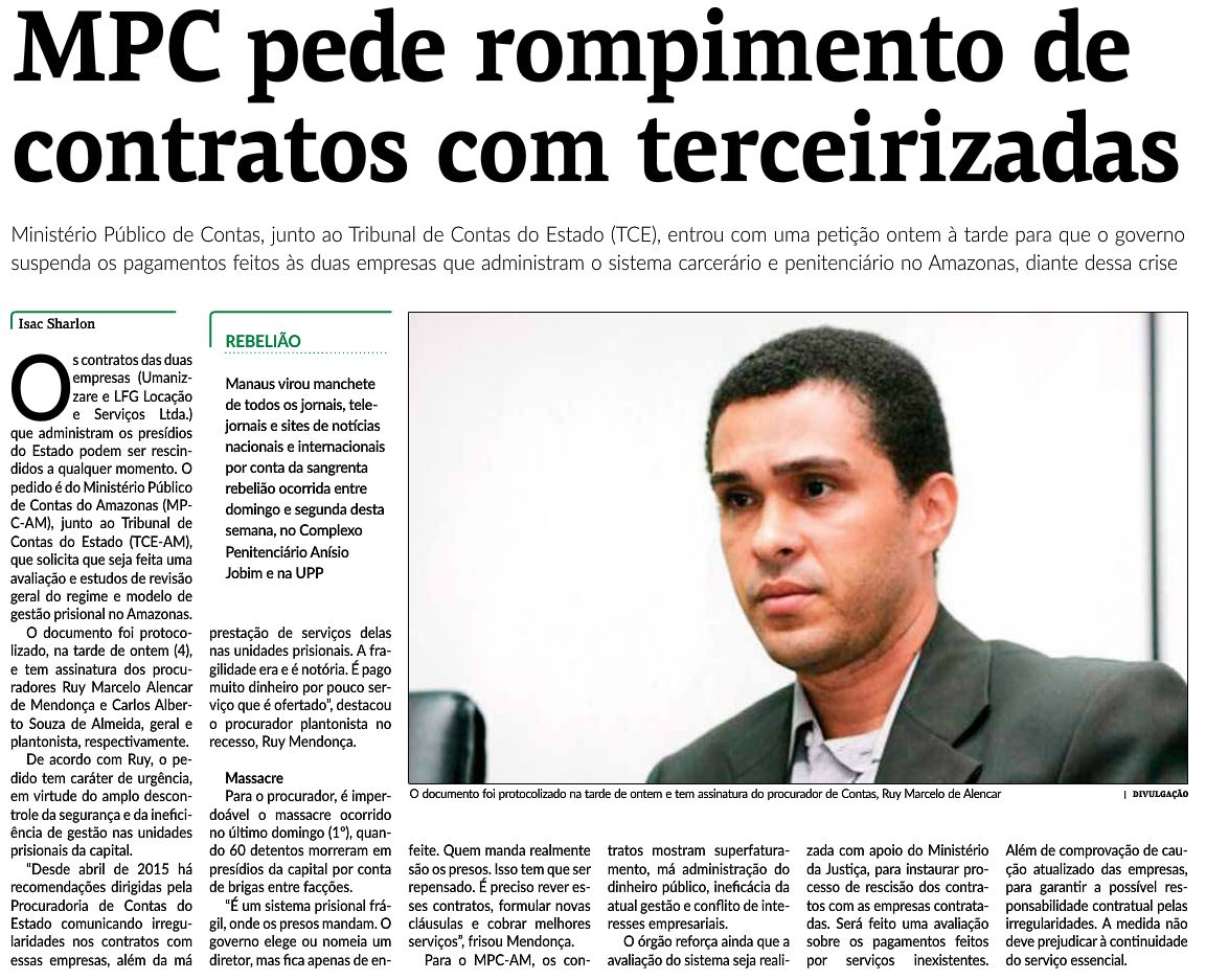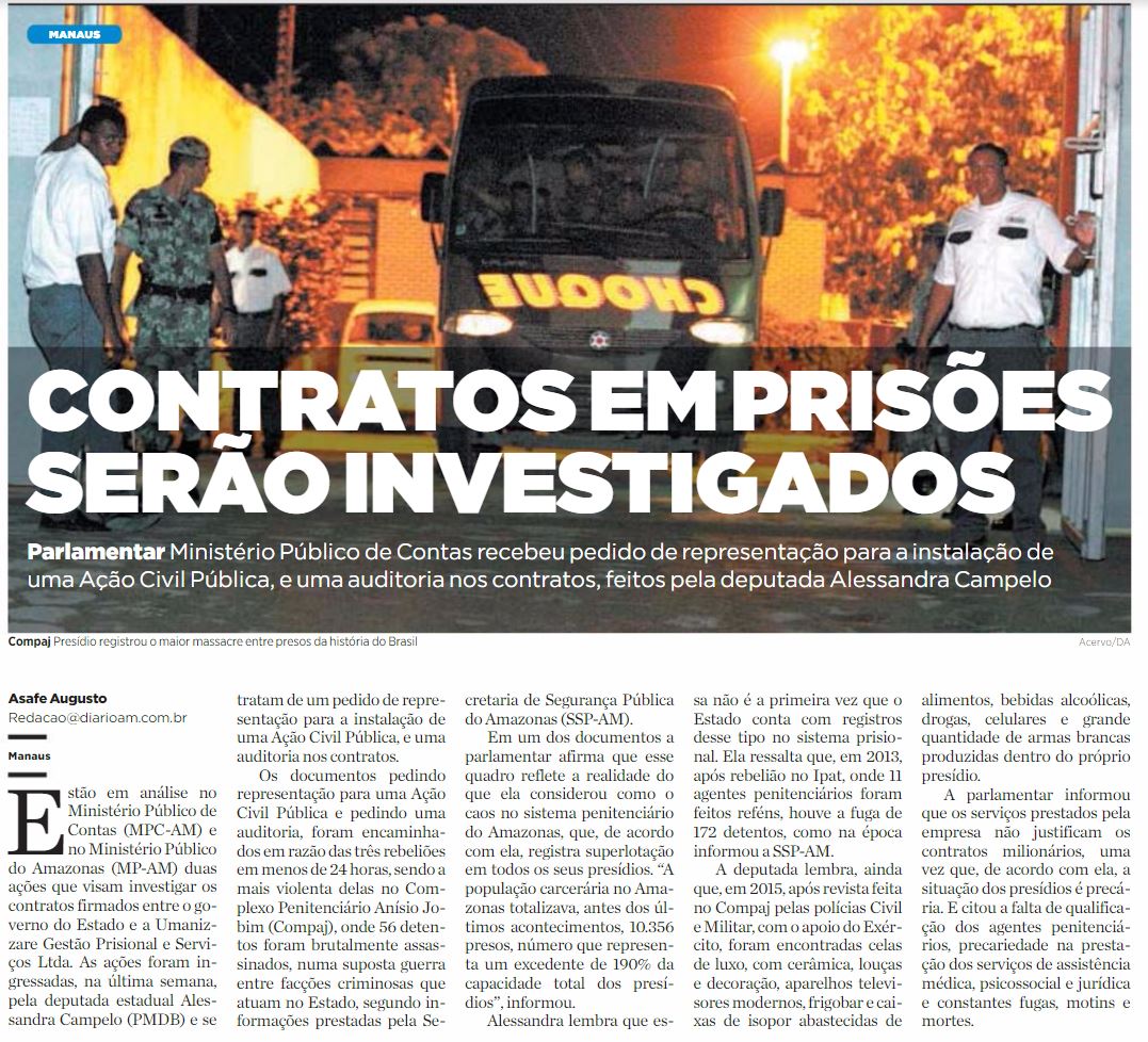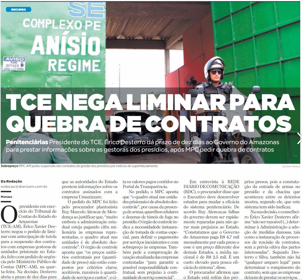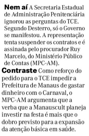 15/01/17 Diário do Amazonas Contratos em prisões serão investigados