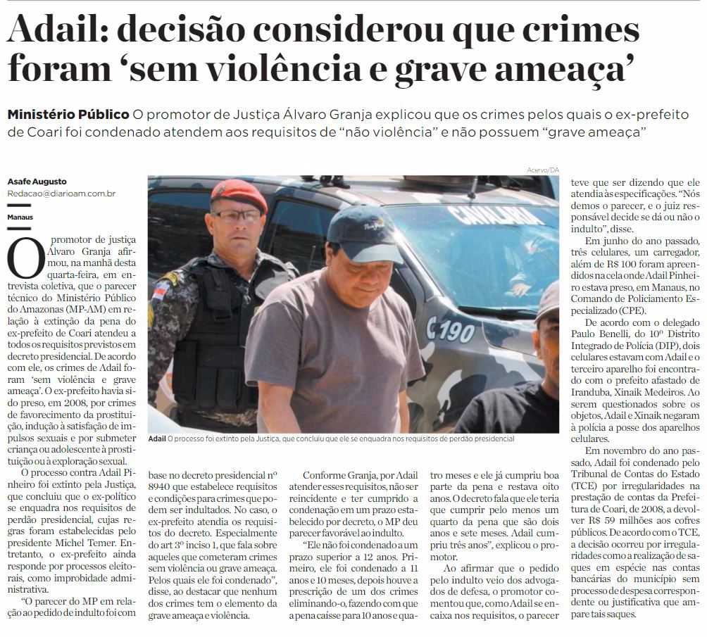 26/01/17 Diário do Amazonas Adail: decisão considerou que crimes foram 'sem violência e grave ameaça'
