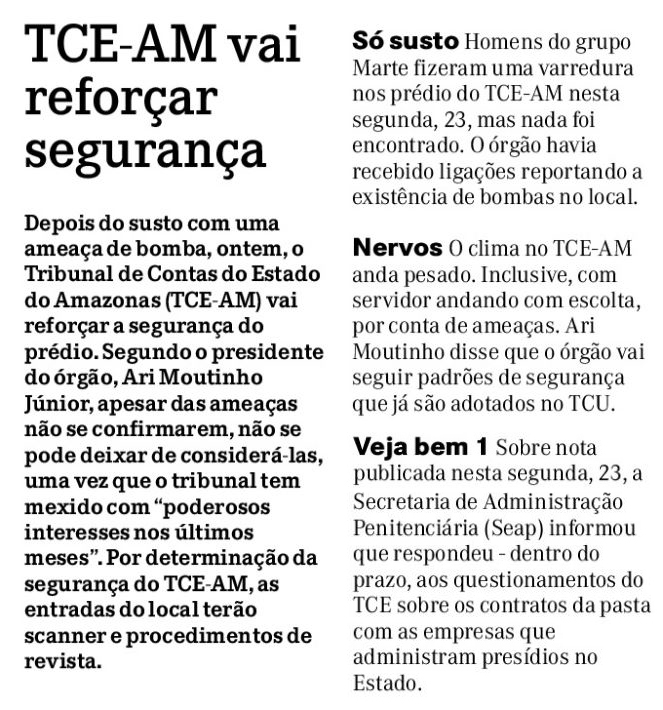 13/01/17 Diário do Amazonas  Segurança no TCE