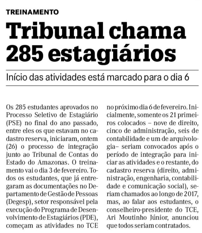 27/01/17 A Crítica  Tribunal chama 285 estagiários