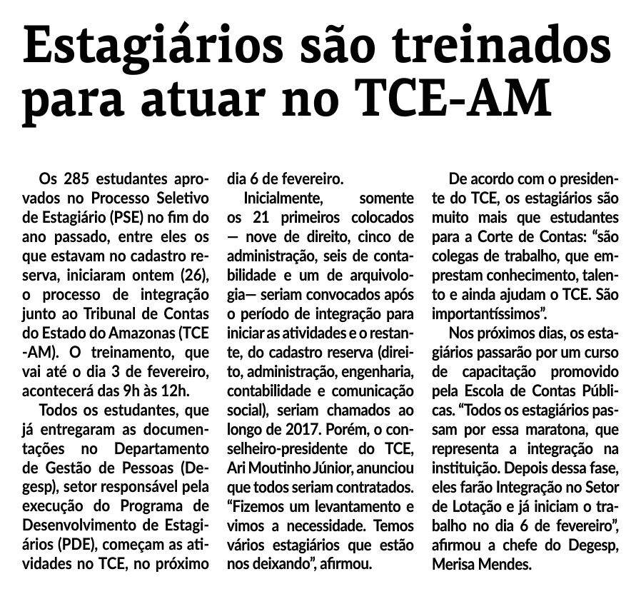 27/01/17 Em Tempo  Estagiários são treinados para atuar no TCE/AM