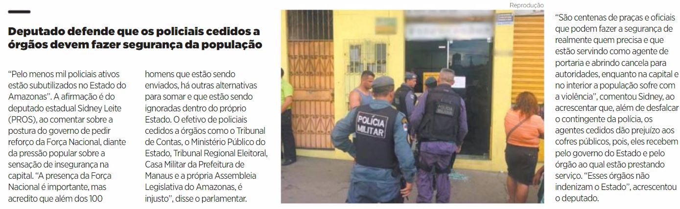 12/01/17 Diário do Amazonas  Deputado defende que os policiais cedidos a órgãos devem fazer segurança da população