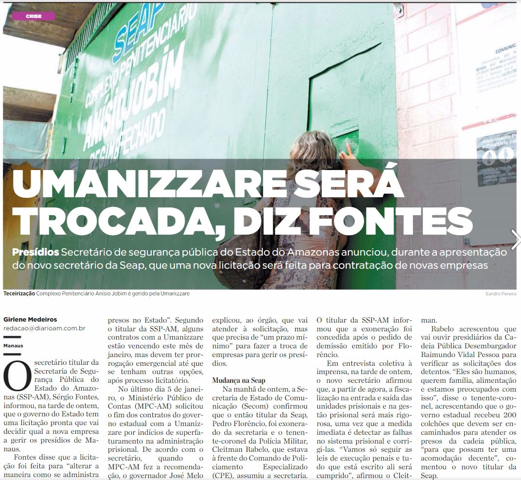 14/01/17 Diário do Amazonas  Umanizzare será trocada, diz fontes