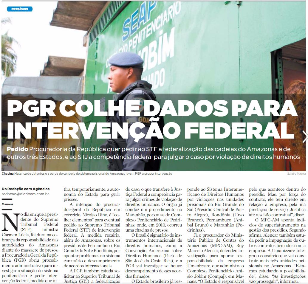 06/01/17 Diário do Amazonas PGR colhe dados para intervenção federal