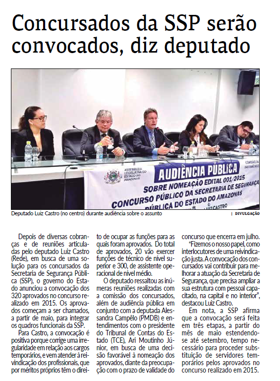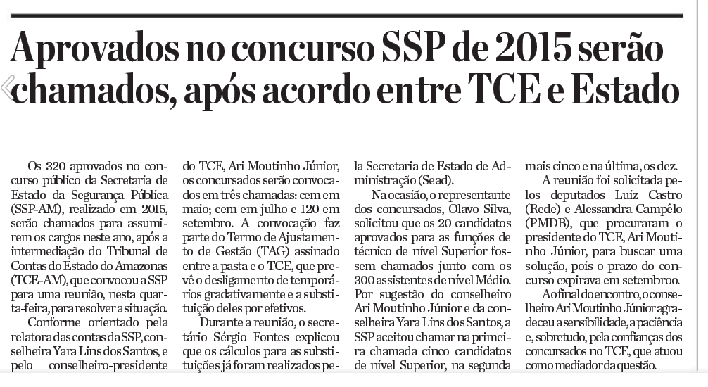 Aprovados no concurso SSP de 2015 serão chamados, após acordo entre TCE e Estado