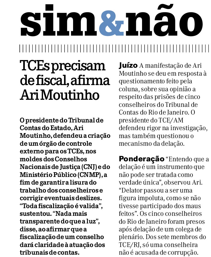 TCEs precisam de fiscal, afirma Ari Moutinho