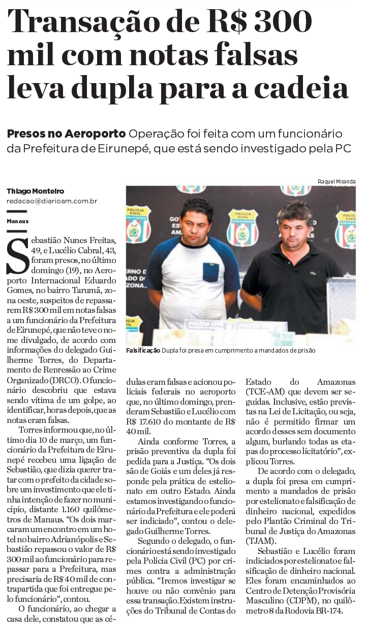 Transação de R$ 300 mil com notas falsas leva dupla para a cadeia