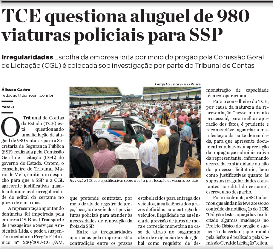 TCE questiona aluguel de 980 viaturas policias para SSP