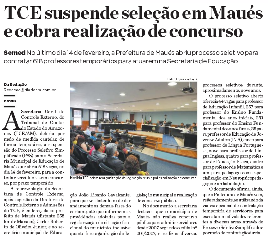 TCE suspende Seleção em Maués e cobra realização de Concurso
