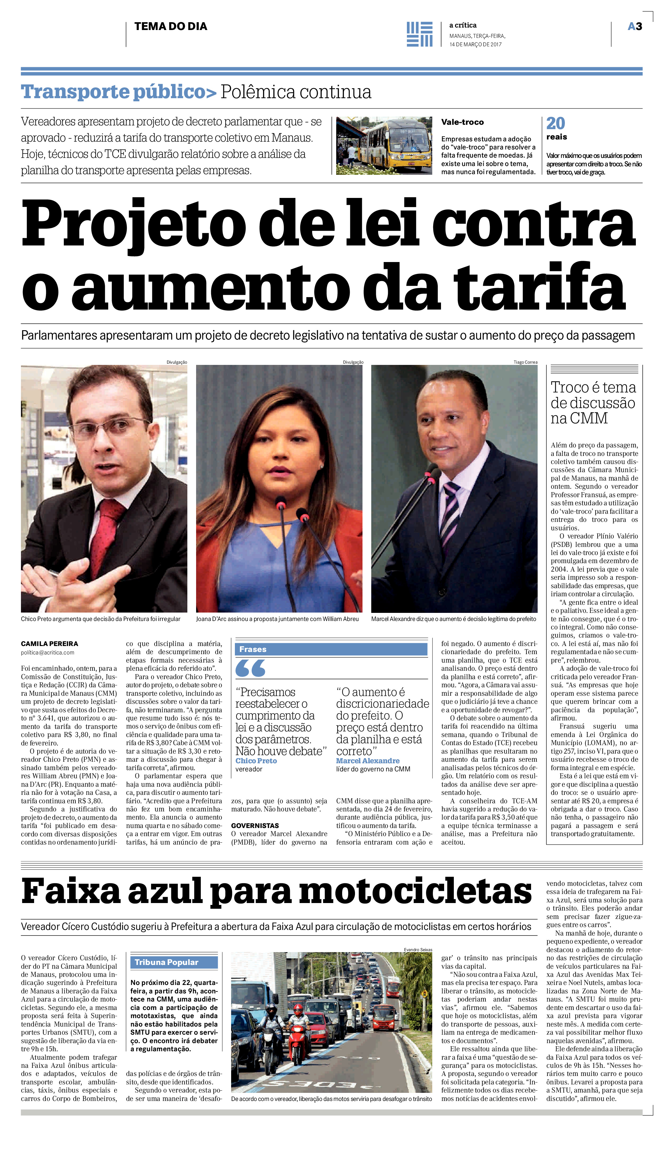 Tarifa de R$: 3,50 é rejeitada por PMM