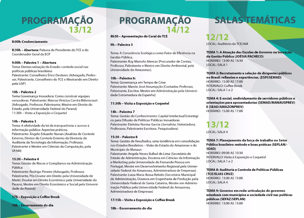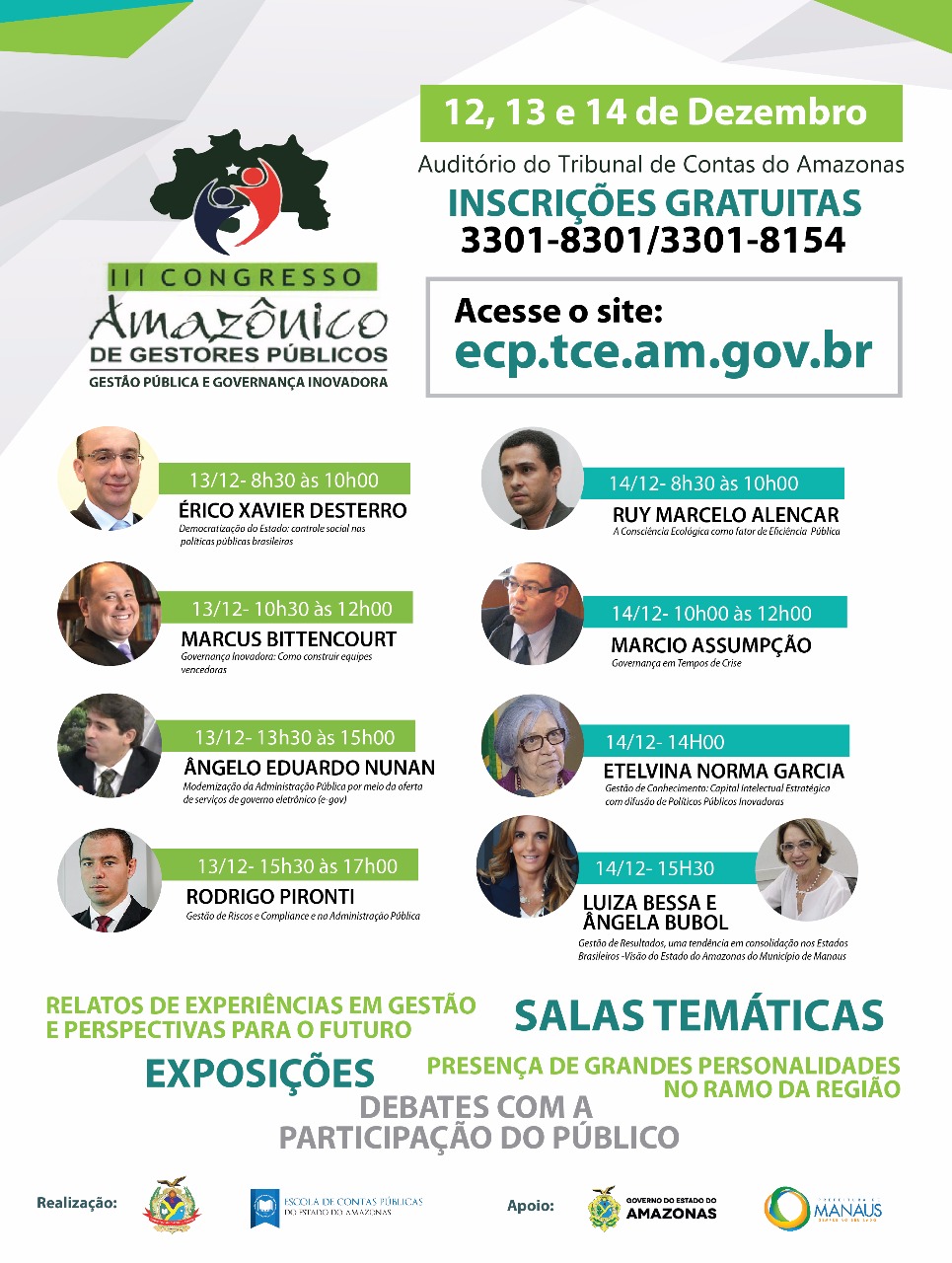 Previsto no calendário de cursos e palestras da ECP, o congresso tem a finalidade de promover a troca de experiências e o aprofundamento científico e técnico de práticas que propiciem melhoras no campo da gestão pública no Amazonas entre especialistas e população.