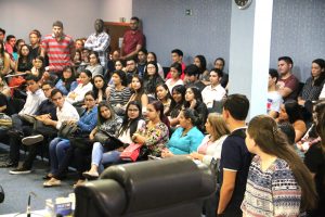 Em seu último dia como presidente do Tribunal de Contas do Estado do Amazonas (TCE-AM), nesta quinta-feira (14), o conselheiro Ari Moutinho Júnior, junto a vice-presidente do Tribunal, conselheira Yara Lins dos Santos, realizou uma reunião com os aprovados no Processo Simplificado para estágio. Os aprovados para as vagas foram recepcionados no auditório da Corte de Contas para uma inicial integração. Os novos estagiários irão assumir seus cargos a partir do dia 11 de janeiro de 2018, após um período de treinamento sobre o Tribunal.