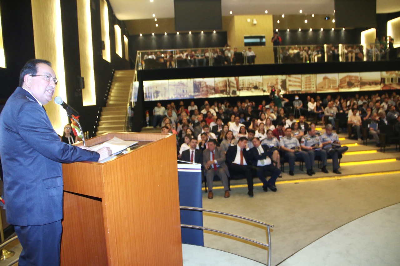 A Escola de Contas Públicas do Tribunal de Contas do Estado (ECP/TCE-AM) deu início, nesta terça-feira (27), ao ano letivo de 2018, com a aula magna do presidente do Tribunal Regional Eleitoral (TRE), Yedo Simões de Oliveira, que falou sobre os desafios das eleições, mostrando um pouco de sua experiência na área eleitoral. Além de várias autoridades, o evento contou com a presença maciça de servidores, jurisdicionados das esferas estadual e municipal e da sociedade civil, com quase 600 inscritos.
