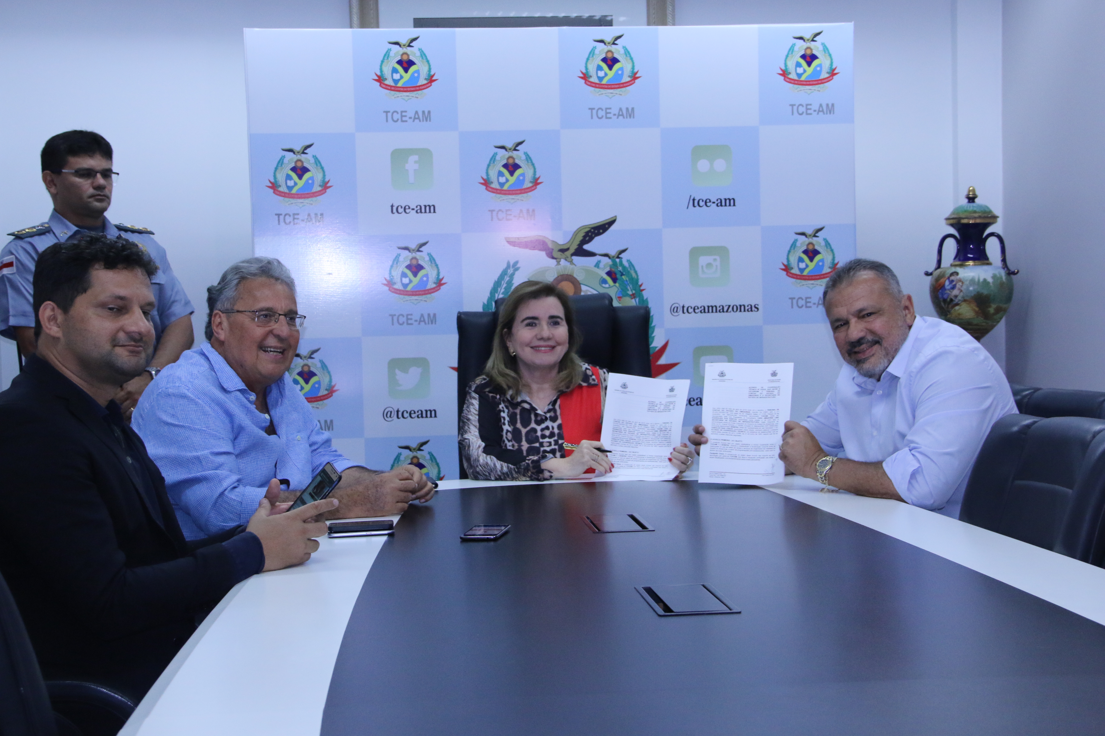 Um termo de cooperação técnica assinado na manhã desta quinta-feira (5) entre o Tribunal de Contas do Amazonas (TCE-AM) e a Secretaria de Estado de Infraestrutura (Seinfra) vai permitir a realização de auditorias concomitantes nas obras públicas realizadas pelo governo do Estado. Considerado como inédito, o acordo foi assinado pela conselheira-presidente do TCE, Yara Lins dos Santos, e pelo secretário da Seinfra, Oswaldo Said Júnior. O subsecretário da Seinfra, Fernando Elias, e o secretário-geral de Controle Externo, Stanley Scherrer, participaram da solenidade e assinada o termo como testemunha.