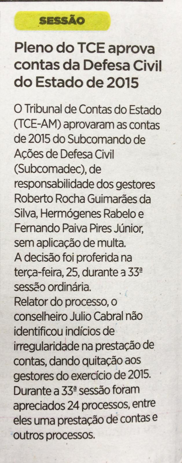 27.09.2018 Diário do Amazonas Aprovação de Contas